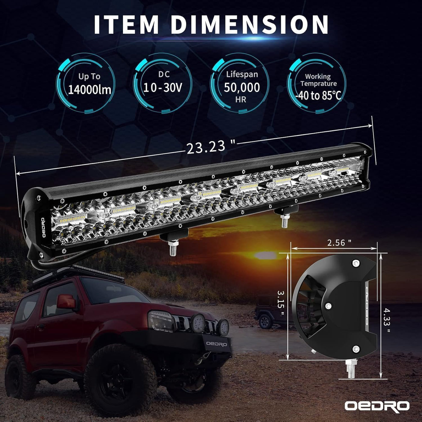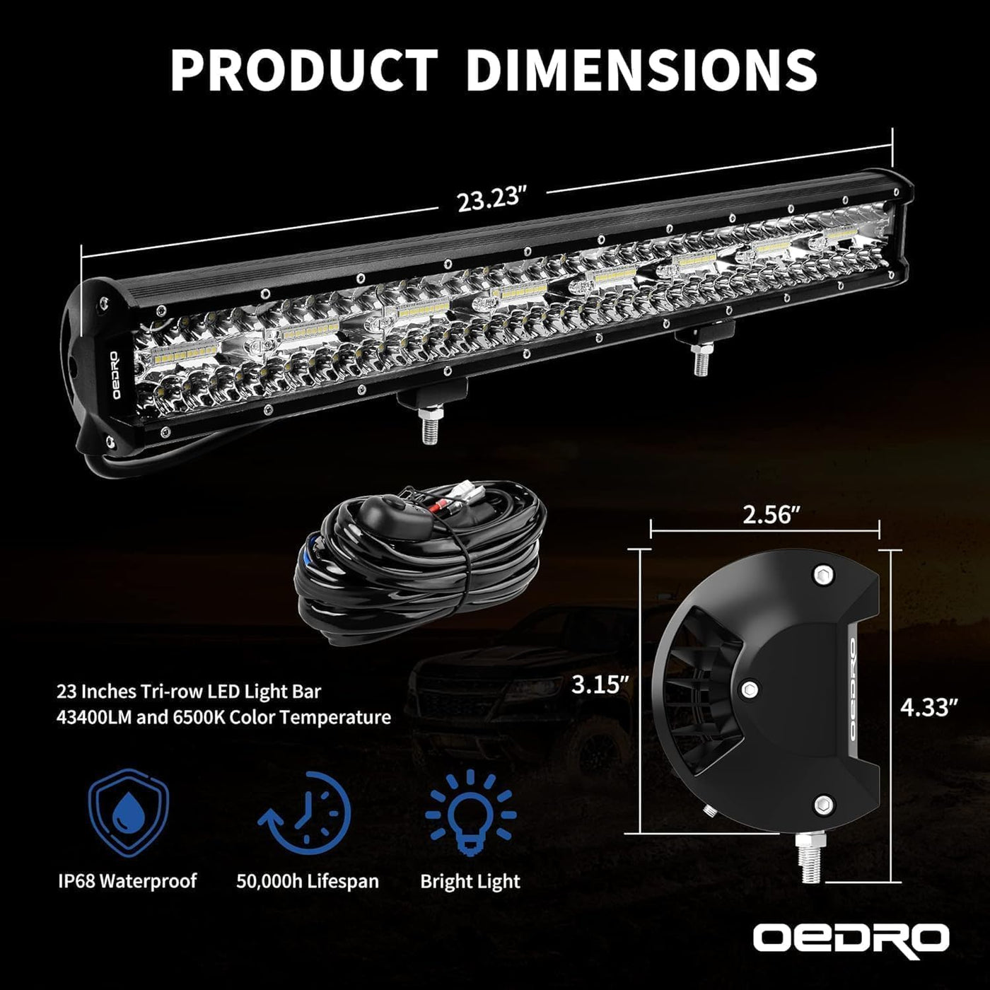 Oedro 23 Inch Led Light Bar Spot Flood Combo Tri-Row Led Driving Light, Ip68 Off Road Lamp Fit For Pickup Truck Suv 4Wd 4X4 Atv