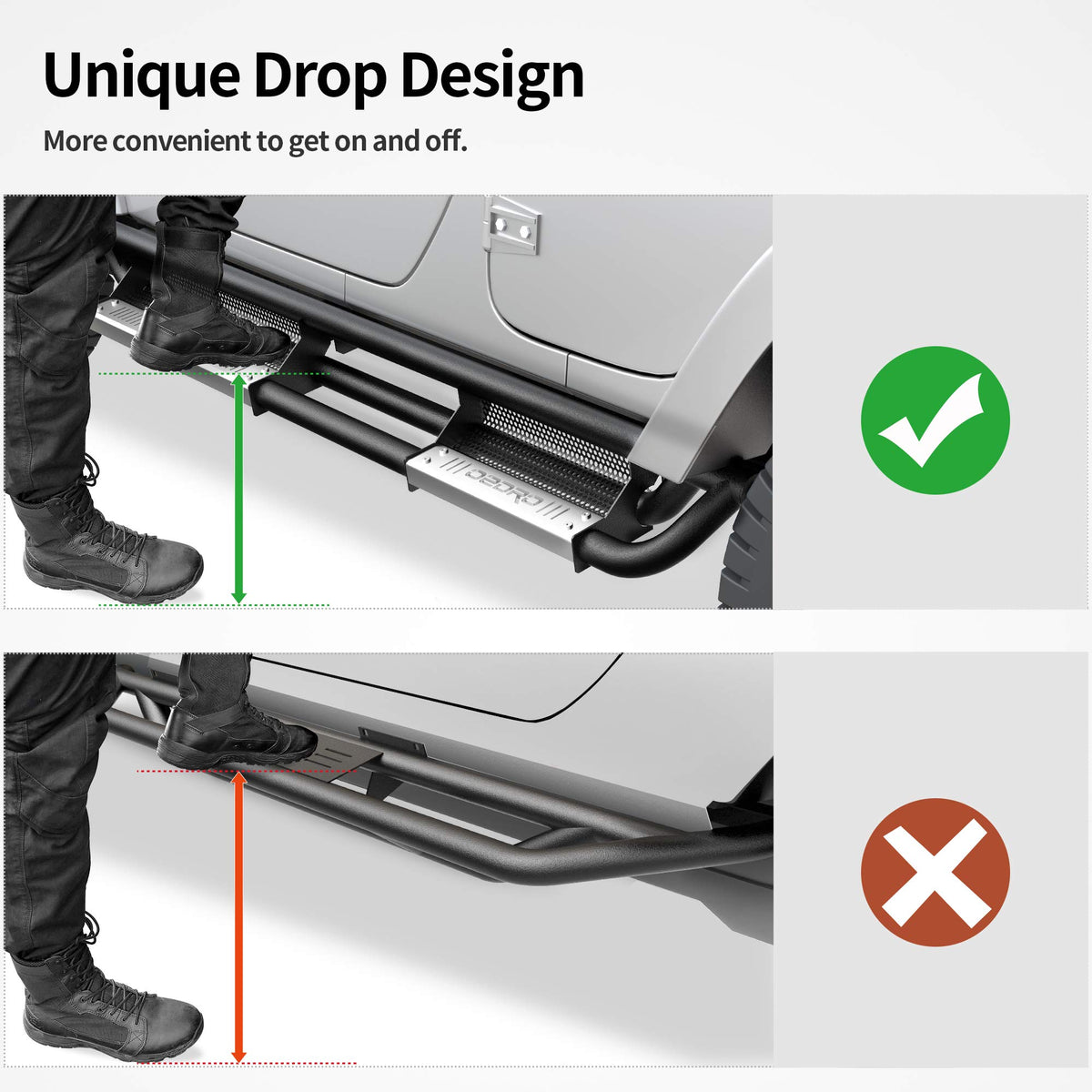 Oedro 6 Inch Running Boards, Drop Side Steps Compatible With 2007-2018 Jeep Wrangler Jk Unlimited 4 Door, Steel Nerf Bar With Si