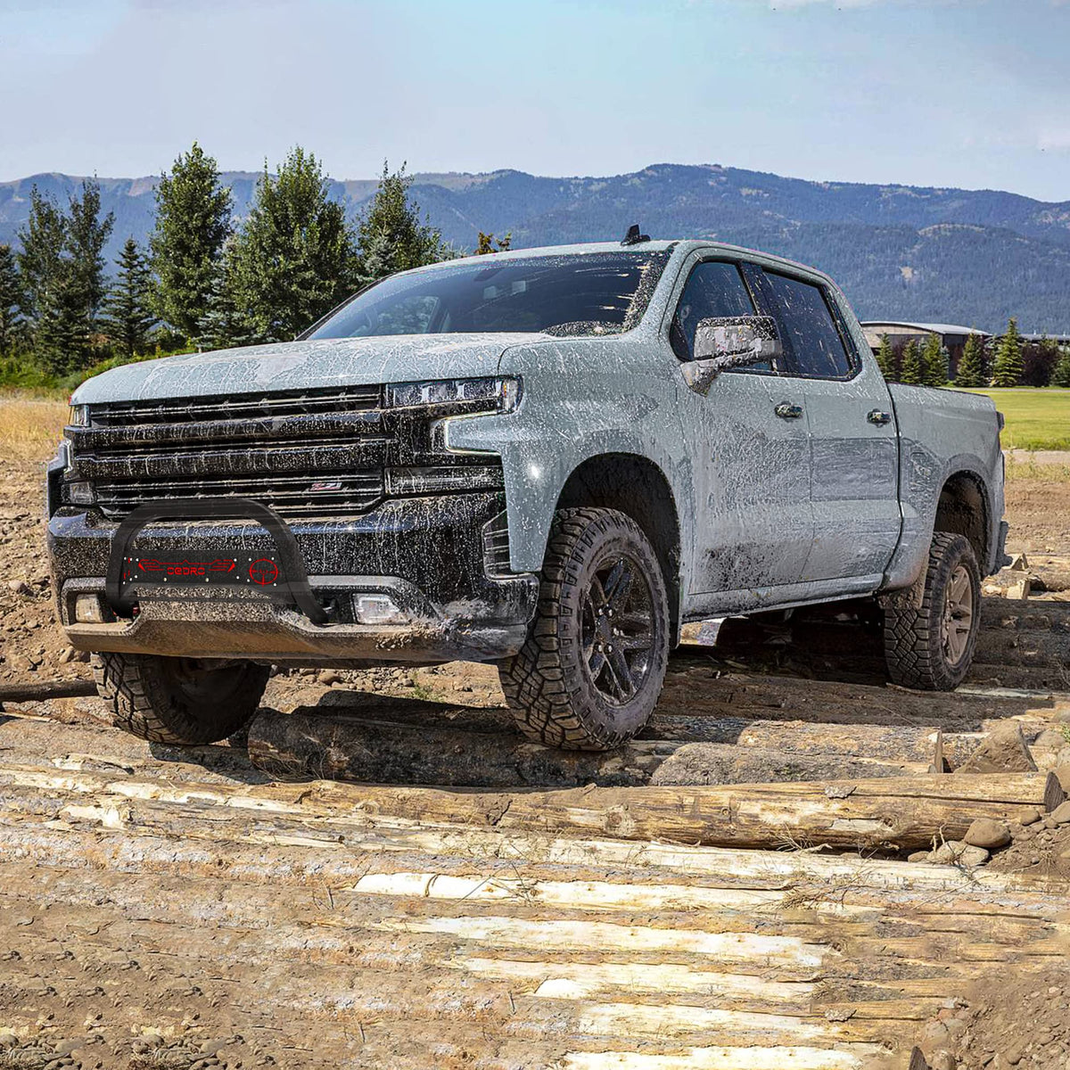 Perfect Fitment - Oedro Bull Bar Is Compatible For 2019-2023 Chevy Silverado 1500/Gmc Sierra 1500, Exclude 2019 Silverado 1500 Ld Exclude Diesel Engine With Tow Hooks. The Bull Bar May Interfere With Front Sensors | Exquisite Appearance - Oedro Brush Guards Feature The Bullet Hole Design, Adding An Aggressive Look For Pickup Trucks. The Red Decor On Back Can Be Removed Or Painted To Whatever Color As Desired | Premium Material - This Front Bumper Frame Uses Square Carbon Steel With A Black Powder-Coated Finish To Enhance Rust Protection And Durability | Functional Mount- This Grille Guard Designed With Pre-Drilled Slots And Holes To Mount 16-18 Inches Led Light Bars And A License Plate | Bolt-On Installation - Direct Bolt-On Installation Using Factory Holes.For Models With Factory Tow Hook, Remove Factory Tow Hooks.