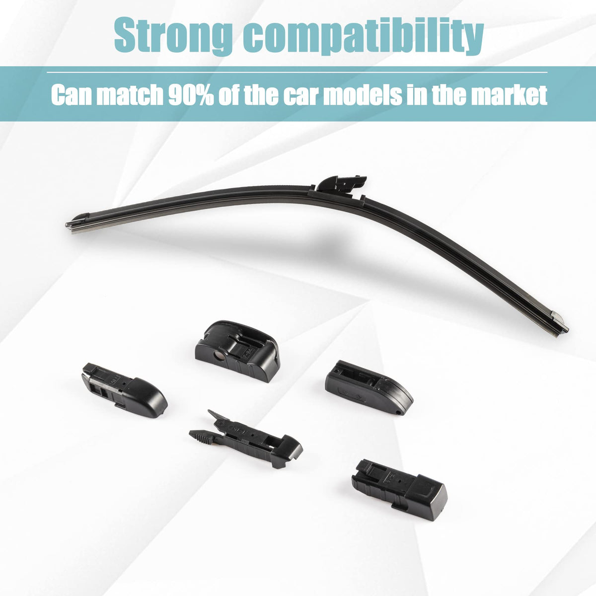 ?Cleanly & Quiet?High Elastic Memory Steel Sheel, Uniform Pressure And Fit The Glass Surface To Scrape More Cleanly, Silent Lubrication With Special Fluorosilicone Rubber Strip. | ?Durable Stable?Special Fluorosilicone Rubber Strip With High Tear Resistance,High Friction Resistance. Aerodynamic Deflector Provides Stable Performance At High Speed. | ?Easy Installed?New Improved Pre-Installed Universal Adaptor Installs Within Minutes And Fits 96 Percent Of All Vehicles. | ?All-Weather?Extreme Temperature Technology Performs Well In Temperatures Ranging From -60? To 120? To Withstand Extreme Weather Conditions. | ?You Will Get?: 1 Driver Side Wiper Blade 22 Inches, 1 Passenger Side Wiper Blade 22 Inches, Wiper Installation Instructions, 6 Spare Adaptor.