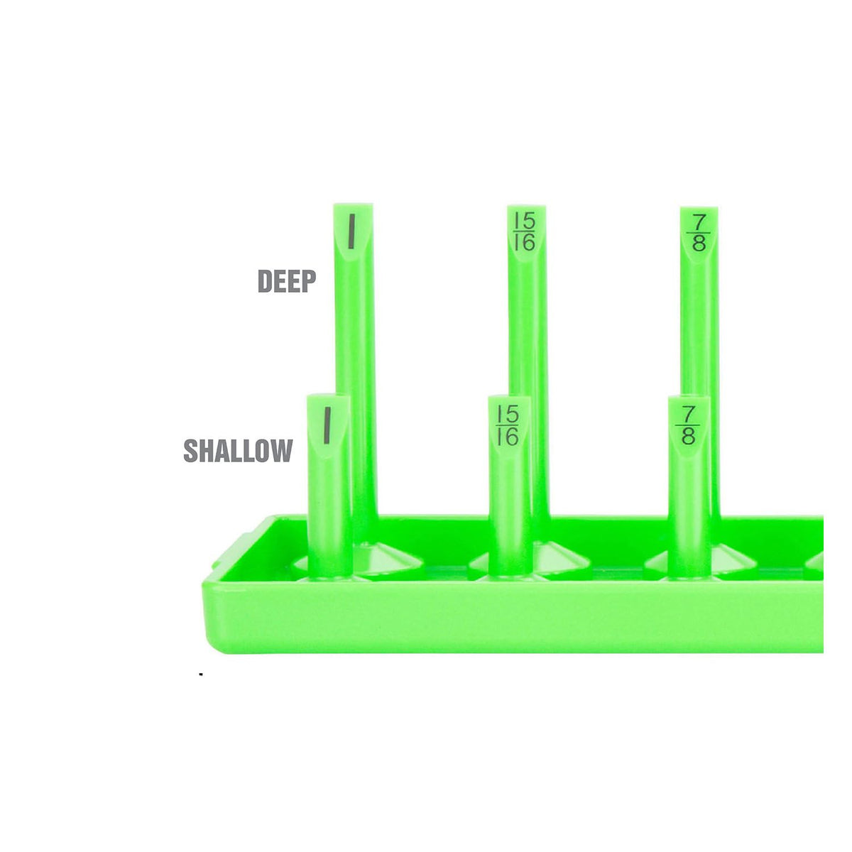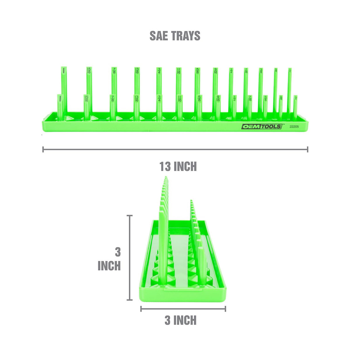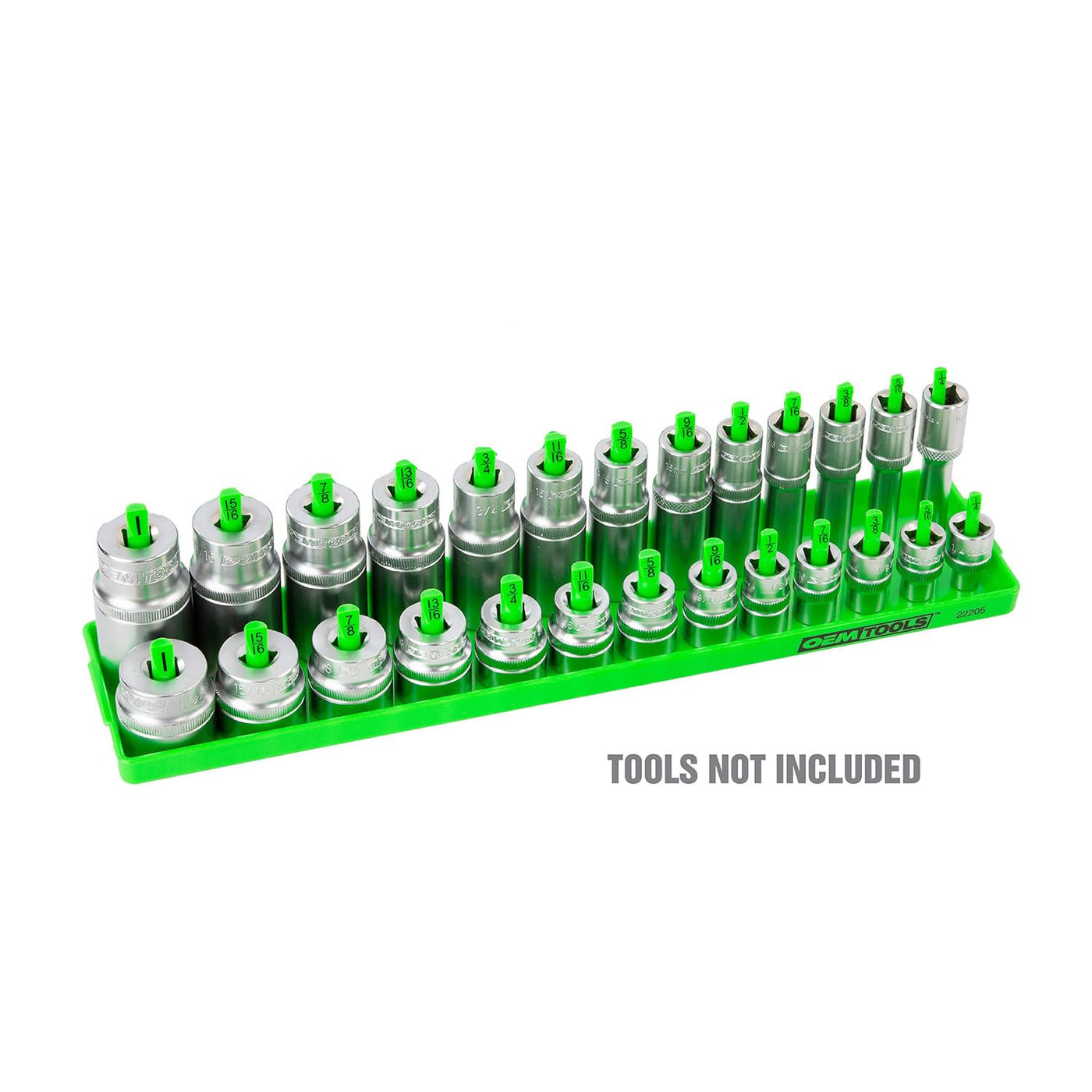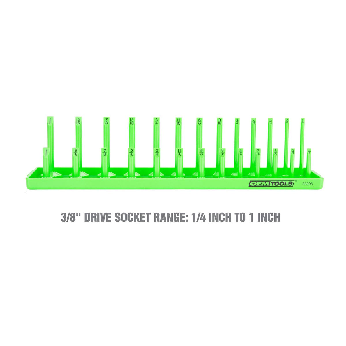 OEMTOOLS 22205 SAE Socket Tray, 3/8' Drive | 26 Deep & Shallow Socket Organizer Tray | Fits Sockets from 1/4” to 1” | Secure Fit | Mechanic's Tool Chest & Tool Box Organizer | Green