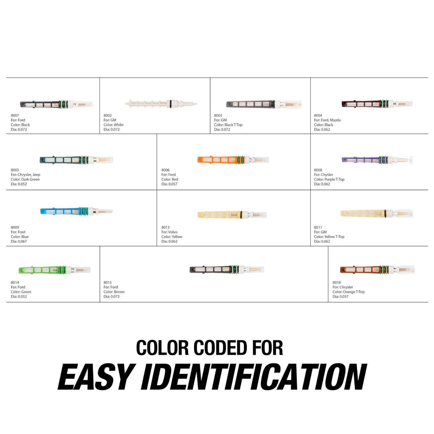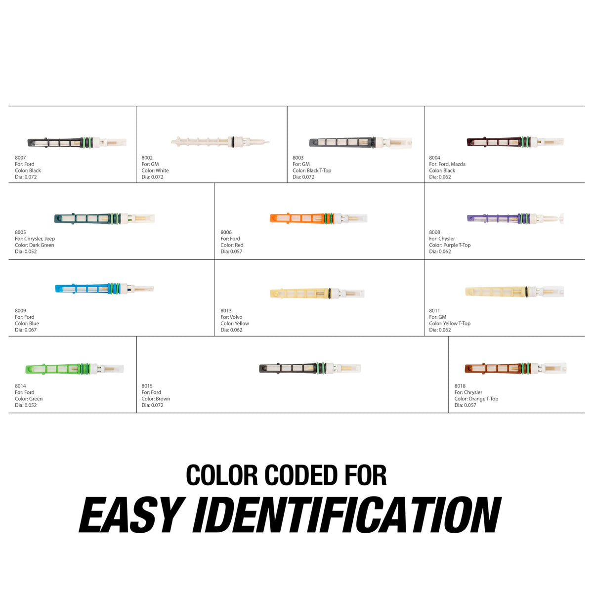 Q: How do I identify the correct orifice tube for my vehicle?A: The color-coded system of the OEMTOOLS assortment allows for easy identification of the correct orifice tube for your vehicle, simplifying the replacement process.
