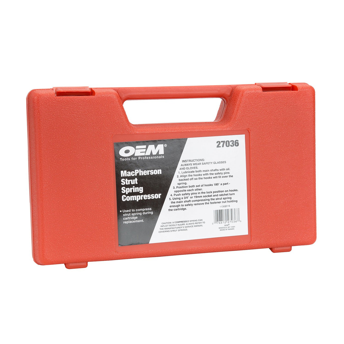 The Oemtools 27036 Macpherson Strut Spring Compressor Compresses Many Macpherson Springs. The Broad Spring Contact And Built-In Detent Pins Help To Lock The Spring Into Place For Safer Spring Compression. Lubricate Thread With Anti-Seize For Best Results.