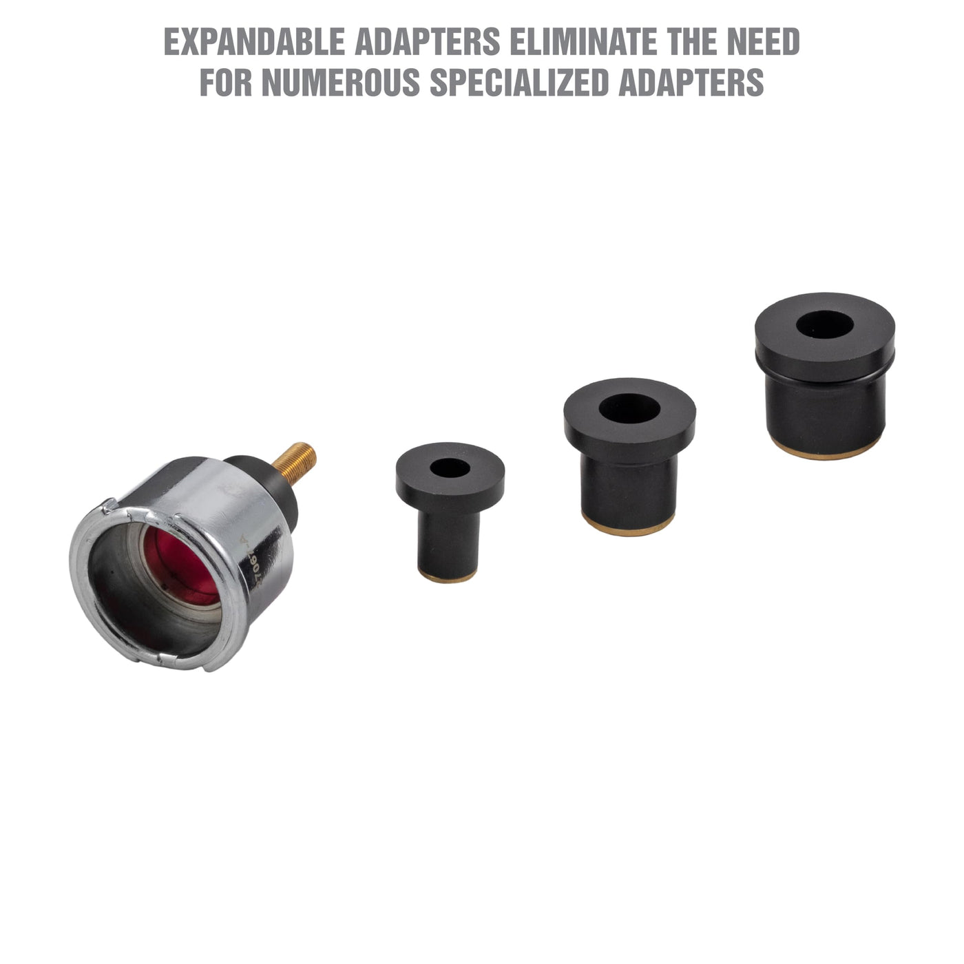 Q: What vehicles is the OEMTOOLS 27068 Universal Cooling System Pressure Test Kit compatible with?A: The OEMTOOLS 27068 Universal Cooling System Pressure Test Kit comes with three expandable adapters, making it compatible with a wide range of vehicles' radiators and cooling system reservoirs, eliminating the need for multiple specialized adapters.