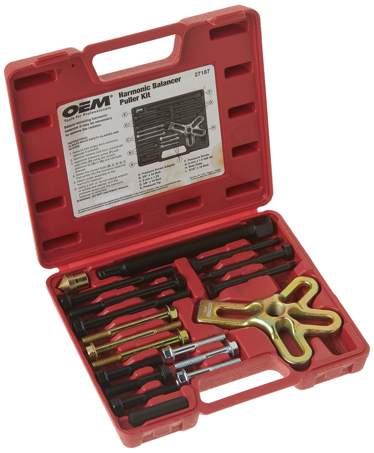 Easily Remove Harmonic Balancers, Vibration Dampers, Pulleys, And Gears With The Oemtools 27187 Harmonic Balancer Puller Kit. Gone Are The Days Of Damaging Components By Using A Prybar To Remove The Harmonic Balancer, Thanks To Our Quality Harmonic Balancer Puller Set. When You Invest In An Oemtools 27187 Harmonic Balancer Puller Kit, You'Re Investing In Versatility For Maintaining Vehicles In A Diy Or Professional Setting. Our 4 Slot Crows Foot Style Yoke Allow The Harmonic Balancer Removal Kit To Be Used For 2 Or 3 Hole Applications, Making It An Excellent Steering Wheel Puller Tool And Crank Pulley Removal Tool. Pull Harmonic Balancers, Vibration Dampers, Gears, And More With These Harmonic Balancer Tools. Select The Corresponding Bolts For Your Harmonic Balancer Tool And Attach The Pressure Tip To The Pressure Screw. Hand-Torque The Harmonic Balancer Kit To Slowly Apply Pressure Until The Harmonic Balancer Pulls Away From The Vehicle. Our Crank Shaft Puller And Damper Puller Kit Comes With A Heat-Treated Yoke, Nickel-Plated Bolts, And Oxide-Coated Bolts That Will Hold Up To Any Puller Job. Always Lubricate The Pressure Screw Of The Crank Pulley Remover Before Using In Order To Increase The Longevity Of The Item And To Make Harmonic Balancer Removal Easier. This Harmonic Balancer Removal Tool Is Not Meant For Use With An Impact Drill Or Similar Tool. Dont Waste Time With The Prybar Anymore. A Quality Dampener Puller Is Within Reach For Your At-Home Garage Or Professional Shop. Let Oemtools 27187 Harmonic Balancer Pullet Kit Make Multiple Jobs Hassle Free. Note: Before Removing The Harmonic Balancer, It May Be Necessary To Remove The Radiator. Comes In A Sturdy Storage Case.
