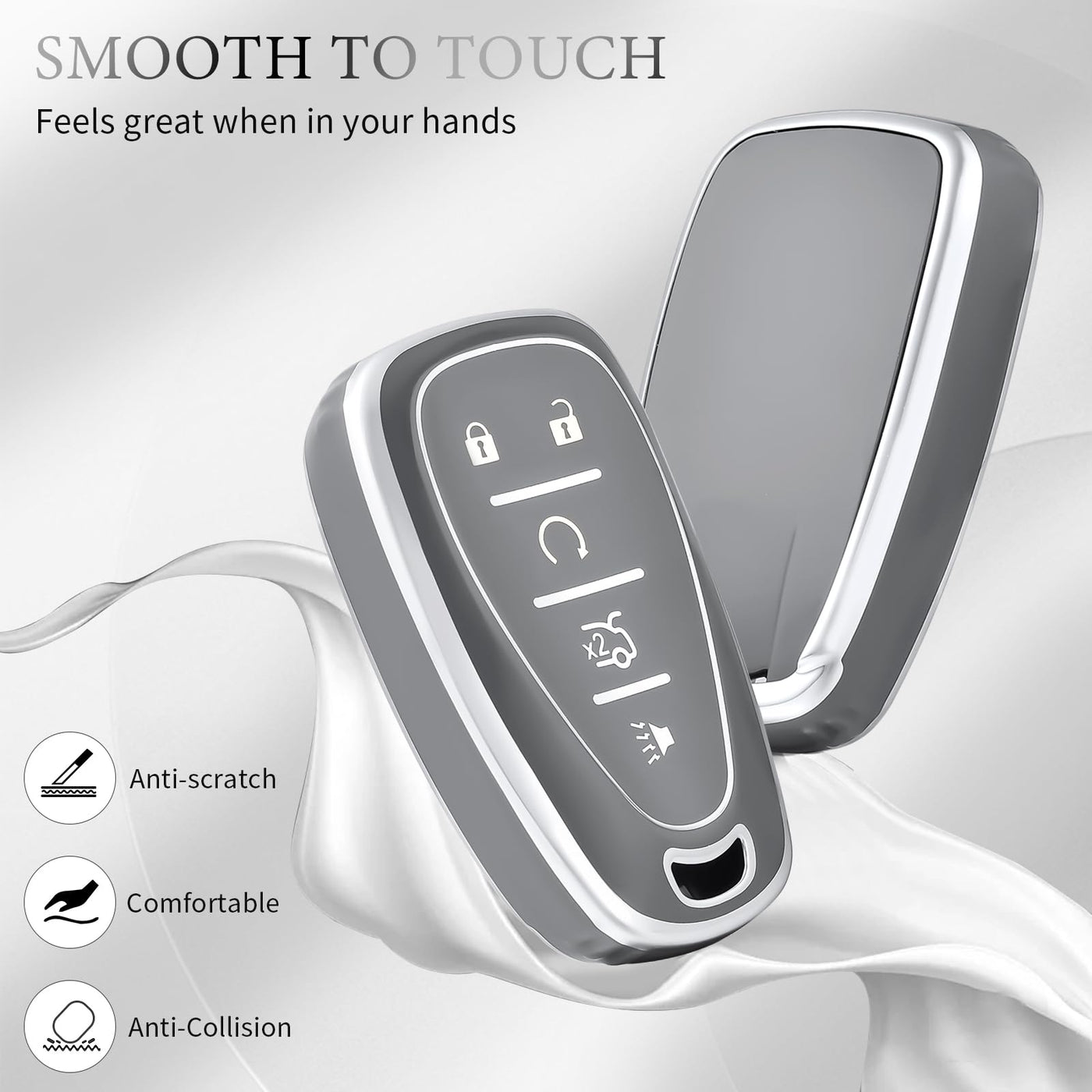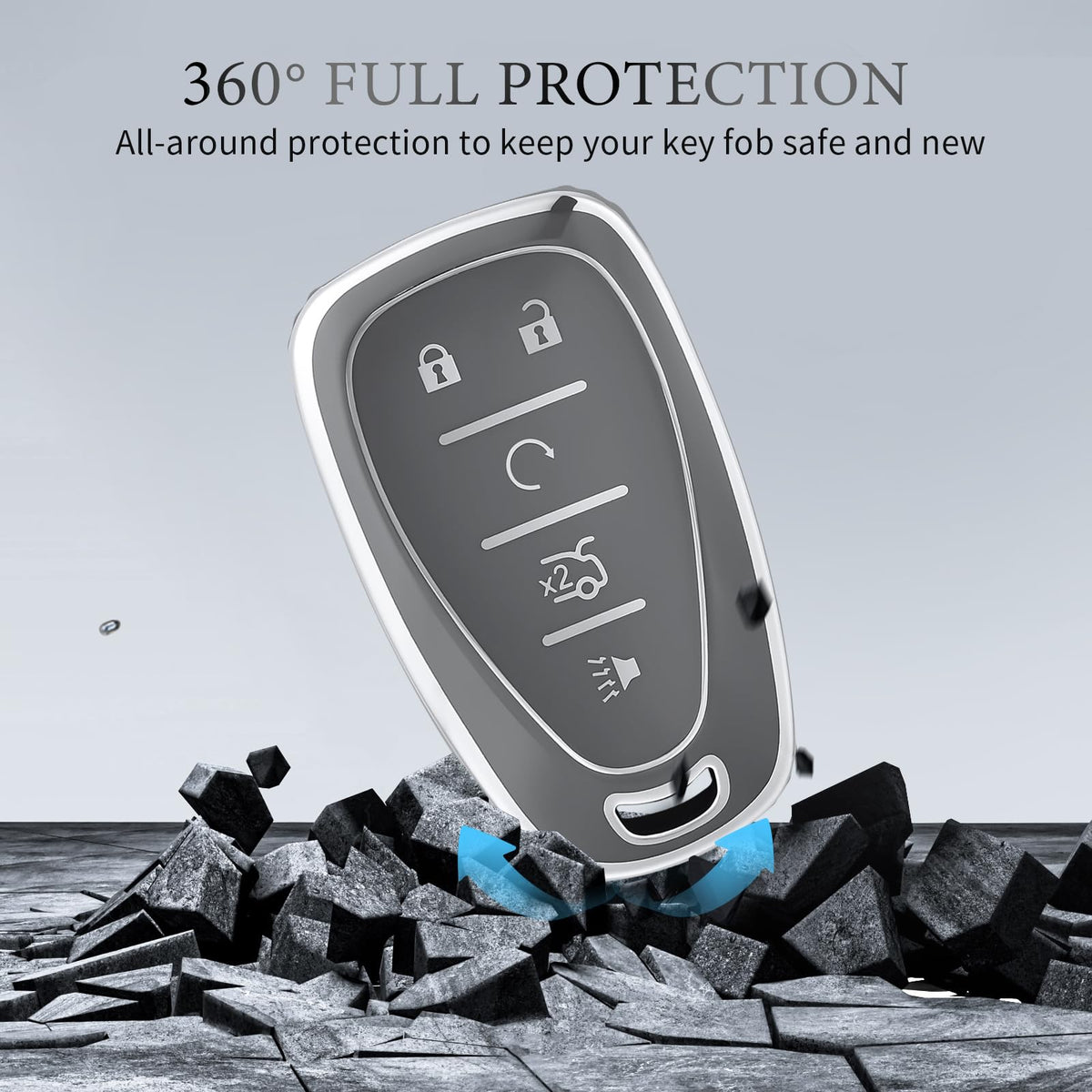 OFFCURVE Car Key Fob Cover Case with Keychain TPU Shell - Smart Key Protector for Chevrolet Chevy Equinox, Malibu, Camaro, Trave