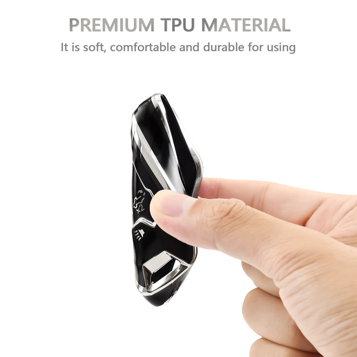 Q: What material is the key fob cover made of?A: The key fob cover is made of high-quality soft TPU, which offers a smooth surface that is easy to clean and durable. It features strong color fastness and a stylish design with gold rims.