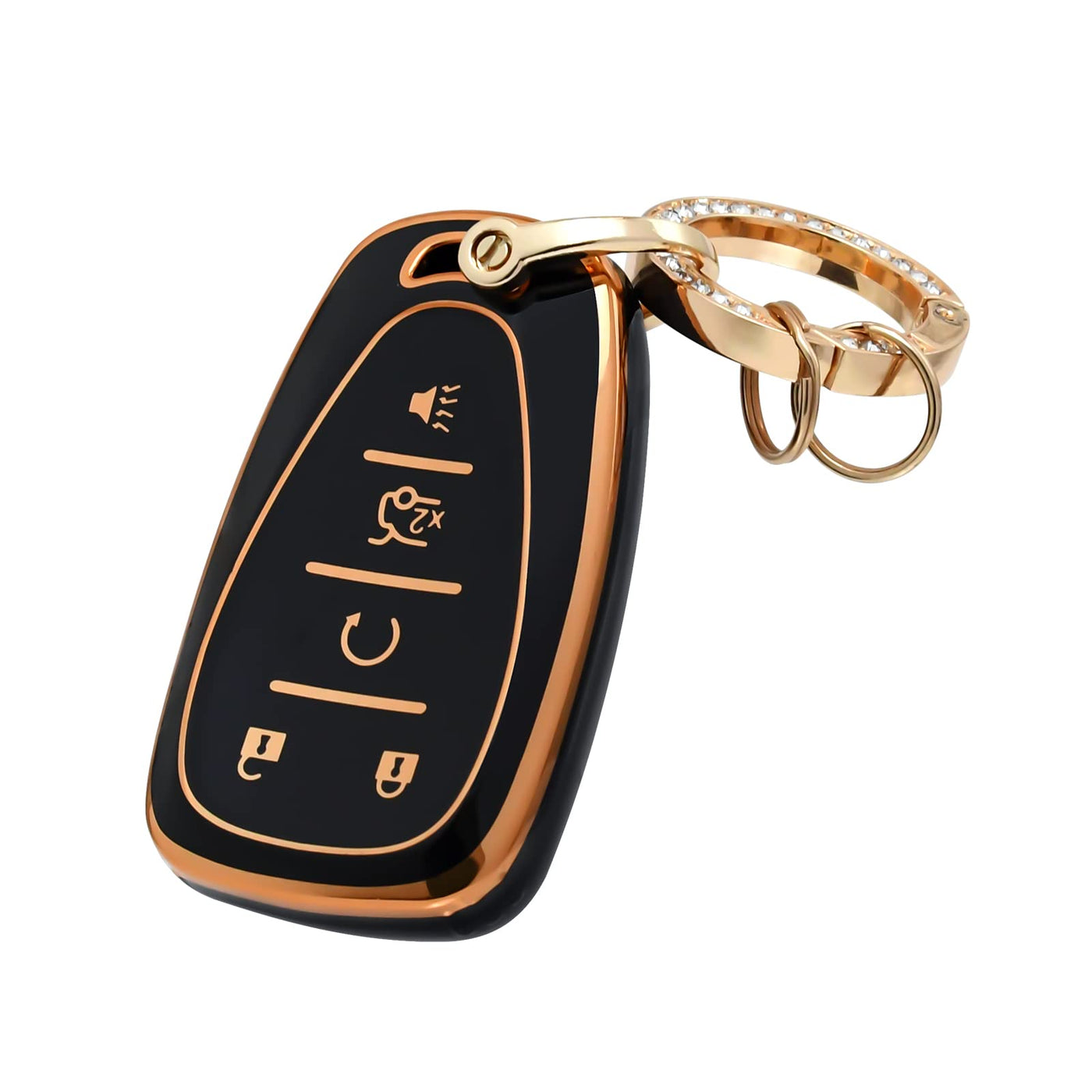 Offcurve For Chevy Key Fob Cover Case Full Tpu Protector For 2016 2017 2018 2019 2020 Chevrolet Chevy Malibu Camaro Cruze Traverse Spark Equinox Sonic Volt Bolt Car Accessories (4 Buttons, Black)