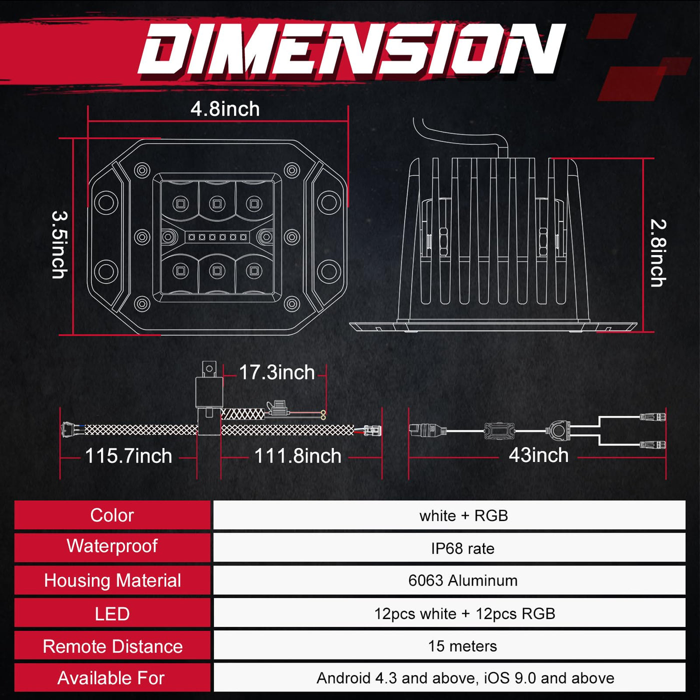 Led pod Flush led light bar rgb led driving lights for utv atv flush mount off road lights Multi Color led work lights for truck 5 5 inch led bumper light bar rgbw led pods Bluetooth flush mounting lights colorful led cubes spot flood combo light for boat