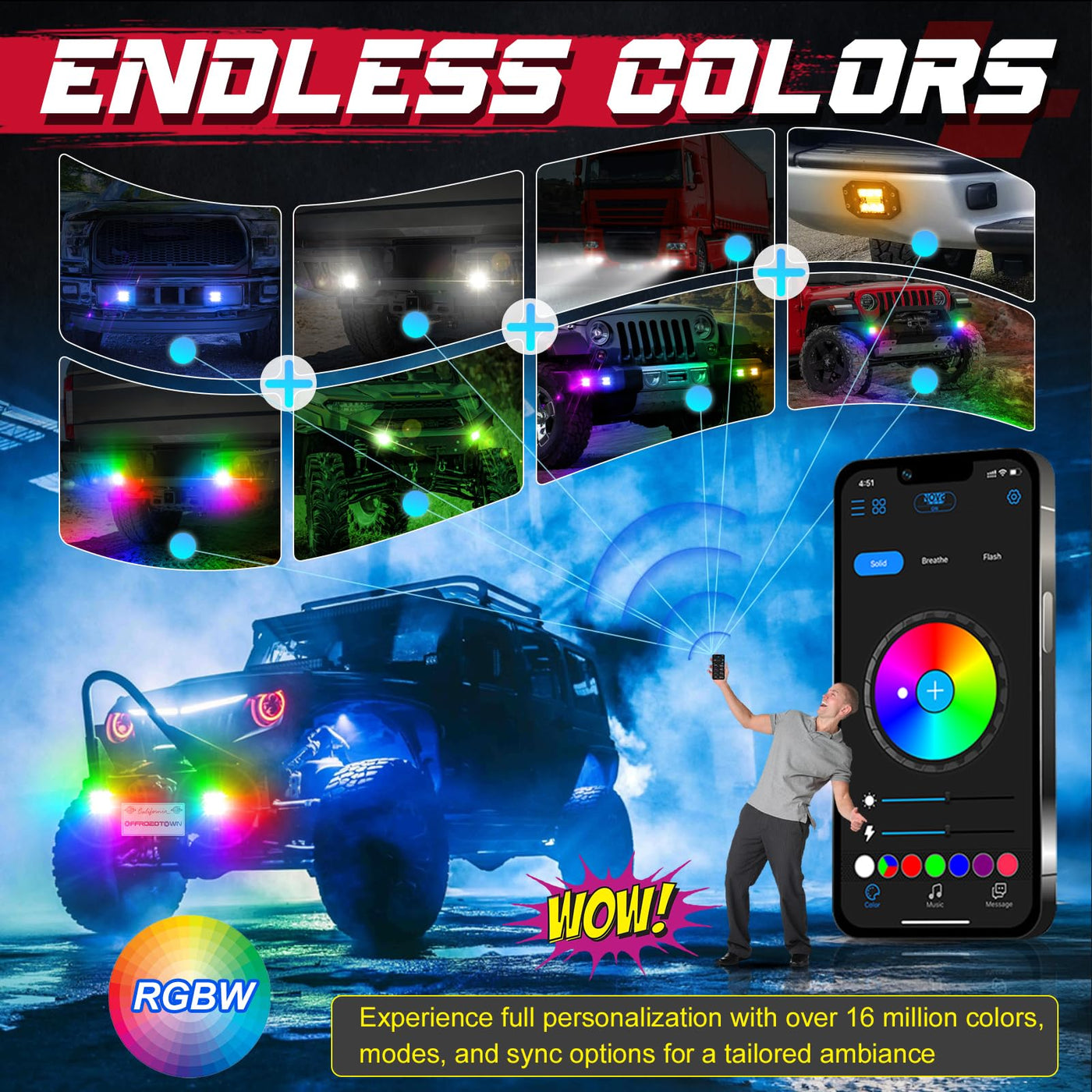 Offroadtown Rgbw Flush Mount Led Lights, 5Inch 60W Rgbw Led Driving Work Flush Fog Off Road Lights For Truck Pickup Utv Atv Suv