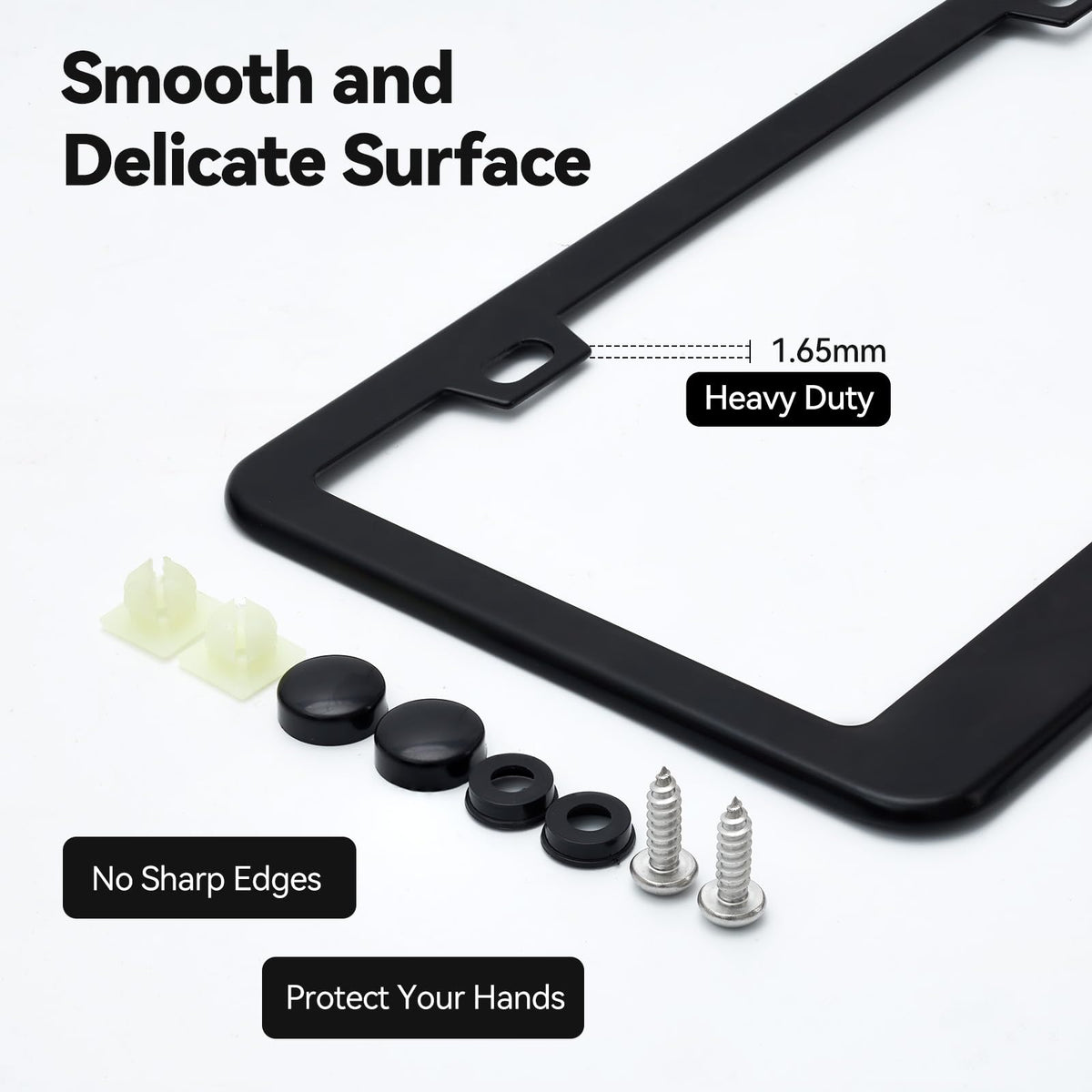 Ohuhu Matte Aluminum License Plate Frame With Black Screw Caps, 2Pcs 2 Holes Black Car Licenses Plate Covers Holders For Us Vehi