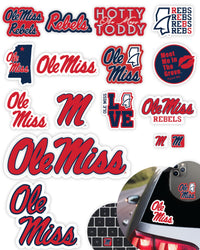 Ole Miss Stickers (14 Piece) Ole Miss Rebels Gifts For Men Football Fans For Car Laptop Water Bottle + 2 Large Mississippi Car D