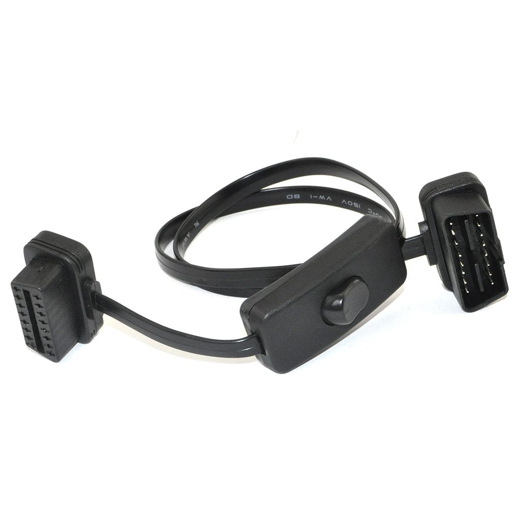 Ollgen Obd 2 Cable Cord,Ultra Slim 16 Pin M/F Obdii Extension Cable With Power Switch,Diagnostic Flat Cord Adapter Connector,70C