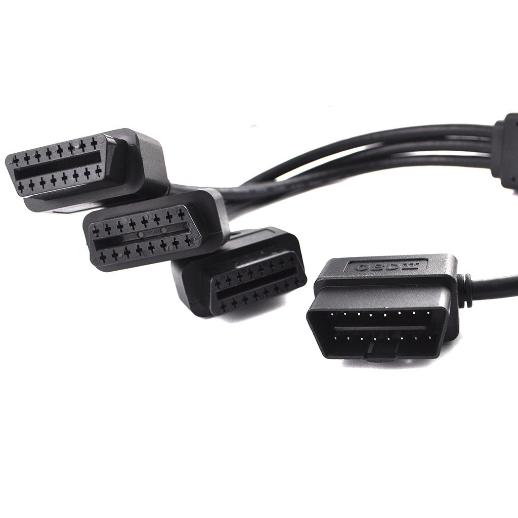Ollgen Obd2 Splitter Cable,Obd-Ii Extension Cable,1 Male To 3 Female Car Diagnostic Extender Cord Adapter,16 Pin Right Angle,1.6