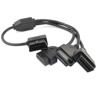 Q: Is this extension cable compatible with all OBD-II diagnostic tools?A: This splitter cable is compatible with diagnostic tools that have a 16 pin socket, making it suitable for a wide range of OBD-II car diagnostic devices.