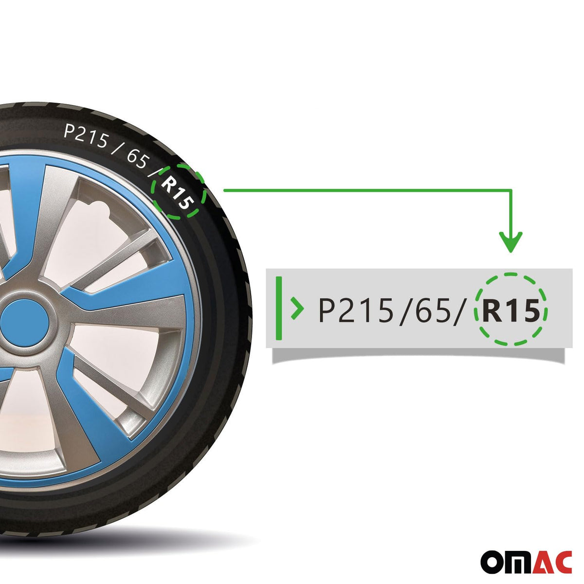 Omac - Gray With Blue Hub Caps 15 Inch Set Of 4, Tapas Para Rines 15, Premium Wheel Covers 15 Inch, R15 Rim Cover Set, Snap On D