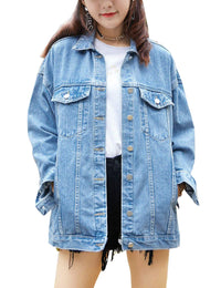 Q: Is this denim jacket suitable for all body types?A: Yes, the Omoone Women's Oversized Denim Jacket is designed with a relaxed loose fit that flatters various body types. It is available in US sizes, making it easy to find the perfect fit.