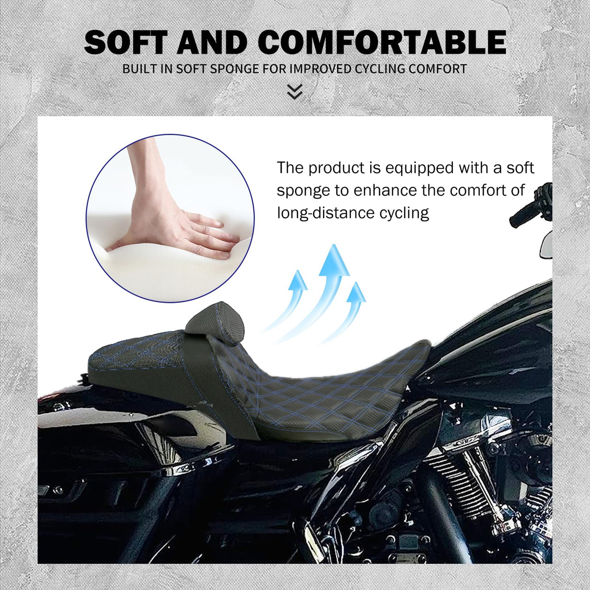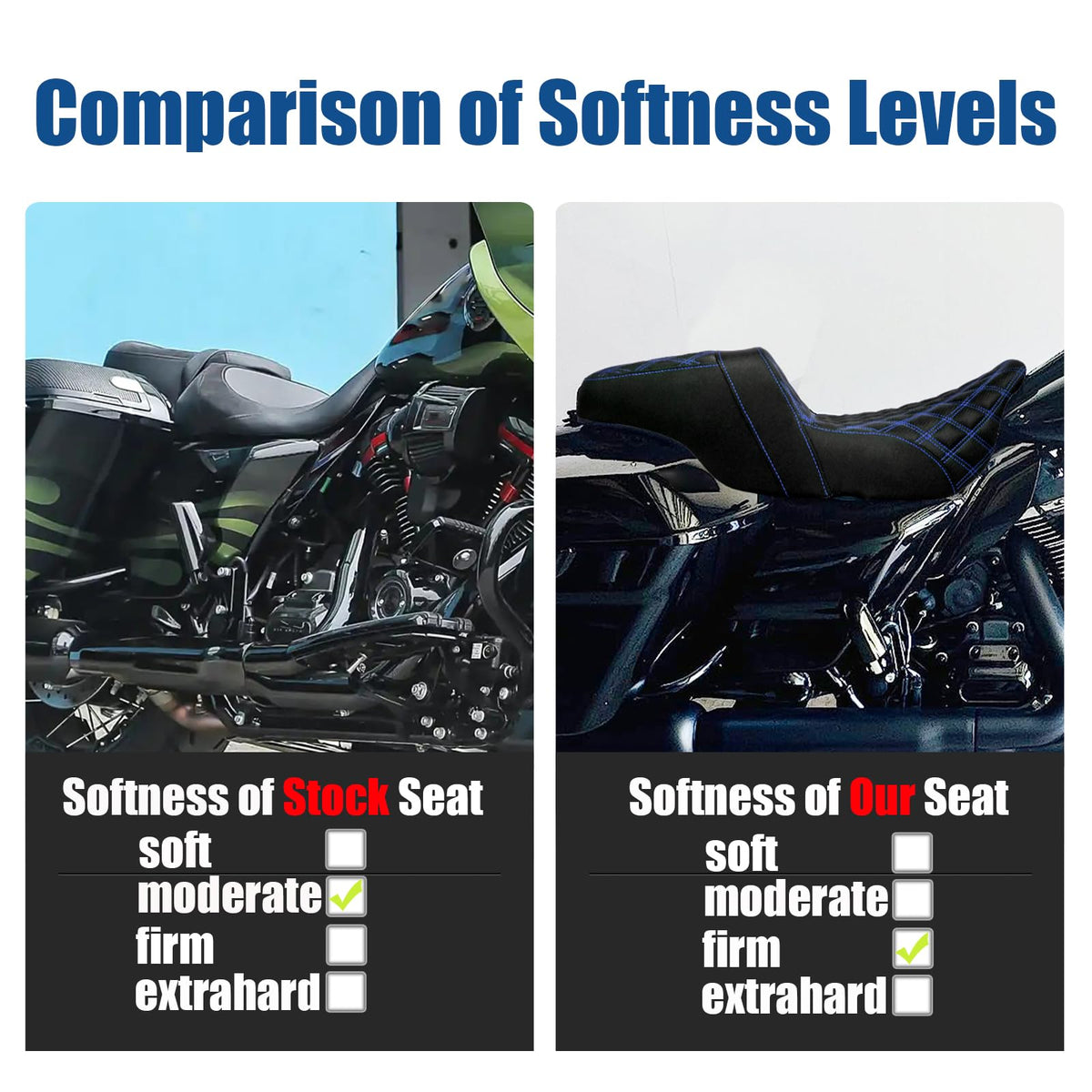 This One-Piece Driver Passenger Seat is designed for Harley Touring models 2009 and later. Fitment: Fit for Harley 2009-later Touring models (except 2021-later FLH).Does not fit Trike models. Fit for Road King FLHR 2009-2023 Fit for CVO Road King FLHRSE5 2013,FLHRSE6 2014 Fit for Road King Classic FLHRC 2009-2013 Fit for Road King Special FLHRXS 2017-2023 Fit for Street Glide FLHX 2009-2023 Fit for CVO Street Glide FLHXSE 2010,2015-2022,FLHXSE2 2011,FLHXSE3 2012 Fit for Street Glide Special FLHXS 2014-2023 Fit for Road Glide FLTRX 2015-2023 Fit for Road Glide ST FLTRXST 2022,Street Glide ST FLHXST 2022 Fit for Road Glide Limited FLTRK 2020-2022 Fit for Road Glide Special FLTRXS 2015-2022 Fit for CVO Road Glide FLTRXSE 2018-2022 Fit for Road Glide Ultra FLTRU 2011-2019 Fit for CVO Road Glide Ultra FLTRUSE 2011,2015-2016 Fit for Road Glide Custom FLTRX 2010-2013 Fit for CVO Road Glide Custom FLTRXSE 2012,FLTRXSE2 2013 Fit for CVO Road Glide Limited FLTRKSE 2022 Fit for Road Glide FLTR / CVO Road Glide FLTRSE3 2009 Fit for Electra Glide Ultra Classic FLHTCU 2014-2019 Fit for Electra Glide Ultra Classic FLHTCU 2017 Fit for Electra Glide Ultra Classic Low FLHTCUL 2015-2016 Fit for Electra Glide Classic FLHTC 2009-2013 Fit for Electra Glide Ultra Limited FLHTK 2010-2013 Fit for Electra Glide Standard FLHT 2009,2019-2022 Fit for CVO Ultra Classic Electra Glide FLHTCUSE4 2009,FLHTCUSE6 2011,FLHTCUSE7 2012,FLHTCUSE8 2013 Fit for CVO Ultra Classic FLHTCUSE5 2010 Fit for CVO Limited FLHTKSE 2014-2021 Fit for Ultra Limited FLHTK 2014-2022 / Ultra Limited Low FLHTKL 2015-2019 Fit for Ultra Classic Electra Glide FLHTCU 2009-2013 Each package includes 1 x Harley Touring Two-Up driver and passenger seat kit, making it an easy and effective upgrade for Harley riders seeking enhanced comfort and style.