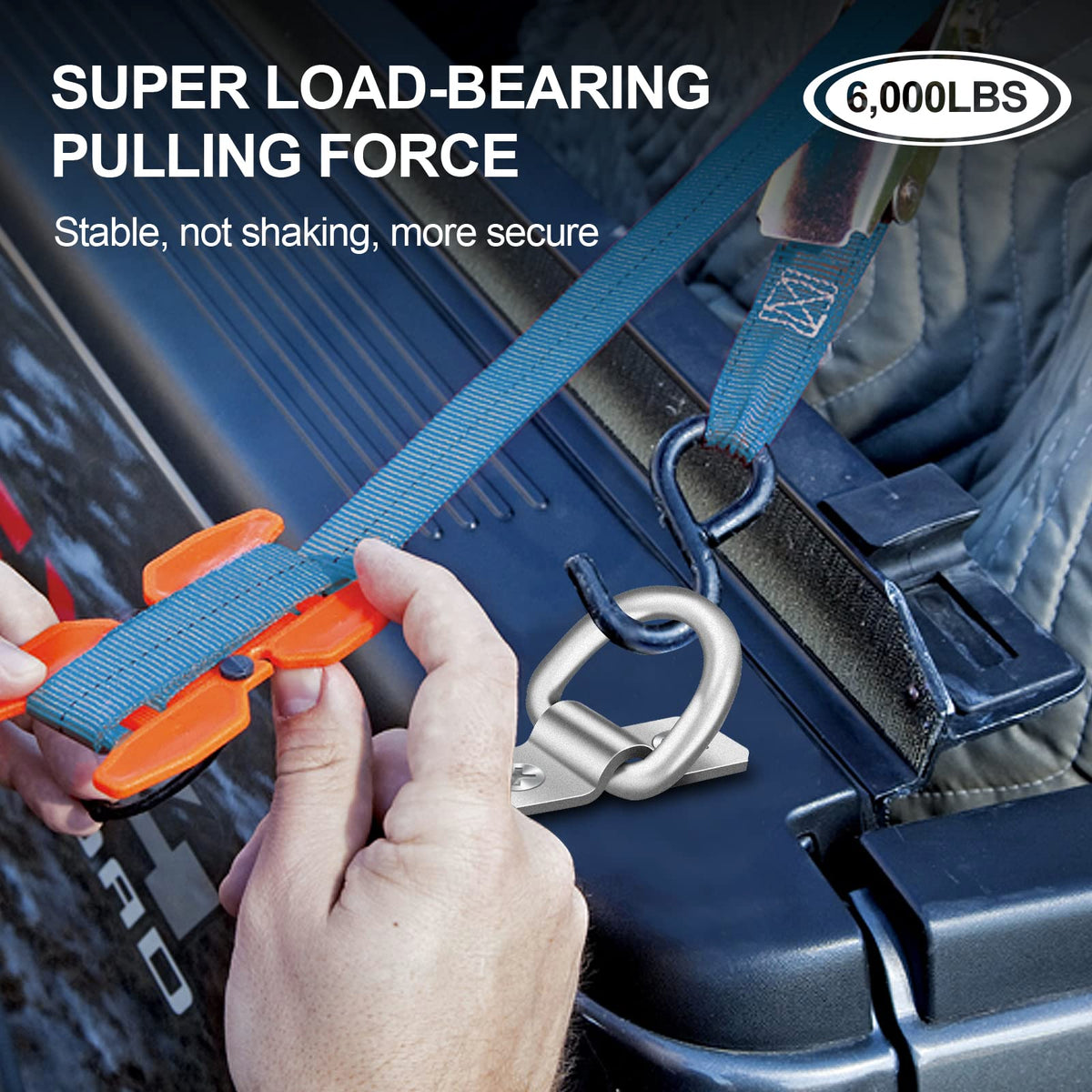 Onesnt D-Rings, Truck Tie Downs Anchor 3/8 Heavy Duty 6000 Pound Steel Tie-Down Ring For Loads On Trucks, Trailers, Boats, Rv Campers, Vans;For Kayaks, Motorcycles, Deliveries, Atvs (Pack Of 6)