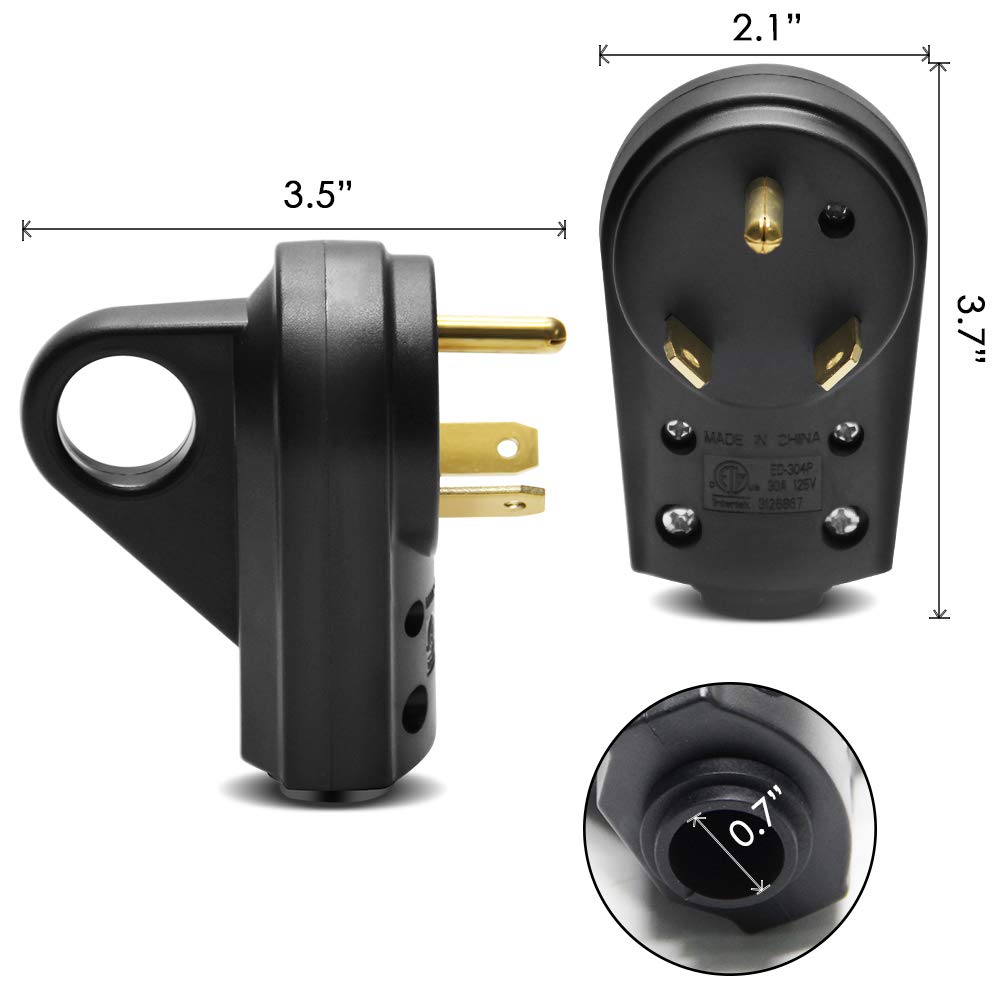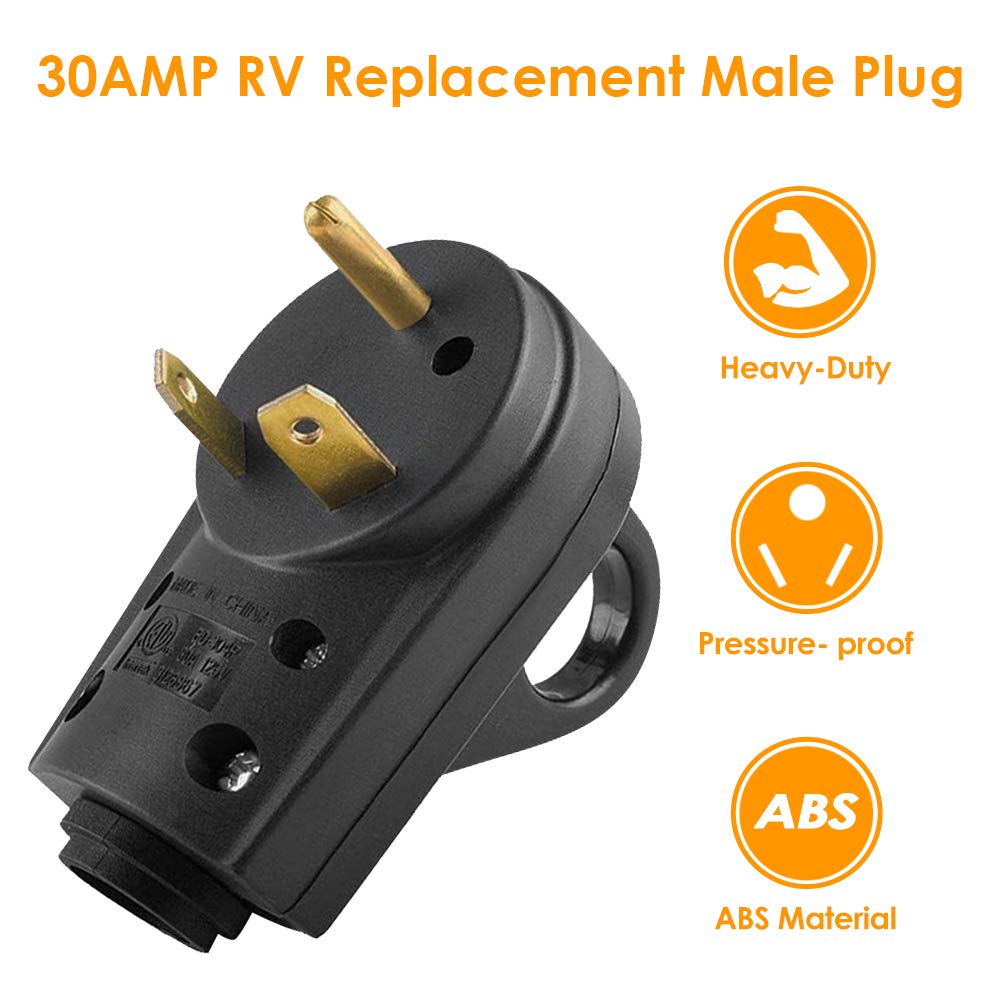 Opl5 30Amp Rv Replacement Male Plug - Heavy Duty Nema Tt-30P Replacement Rv Receptacle Electrical Plug With Easy Unplug Handle D