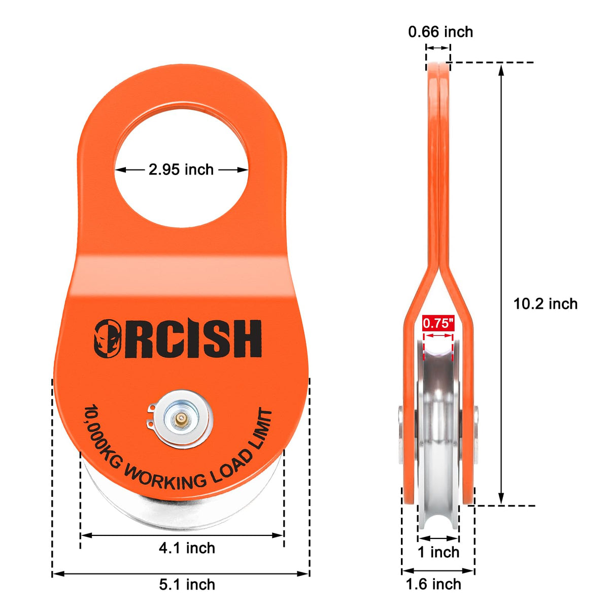 Orcish 10 Ton Snatch Block, 22,000 Lbs Capacity Block And Tackle Pulley System, Pulleys For Rope, Winch Hook Accessories, Heavy