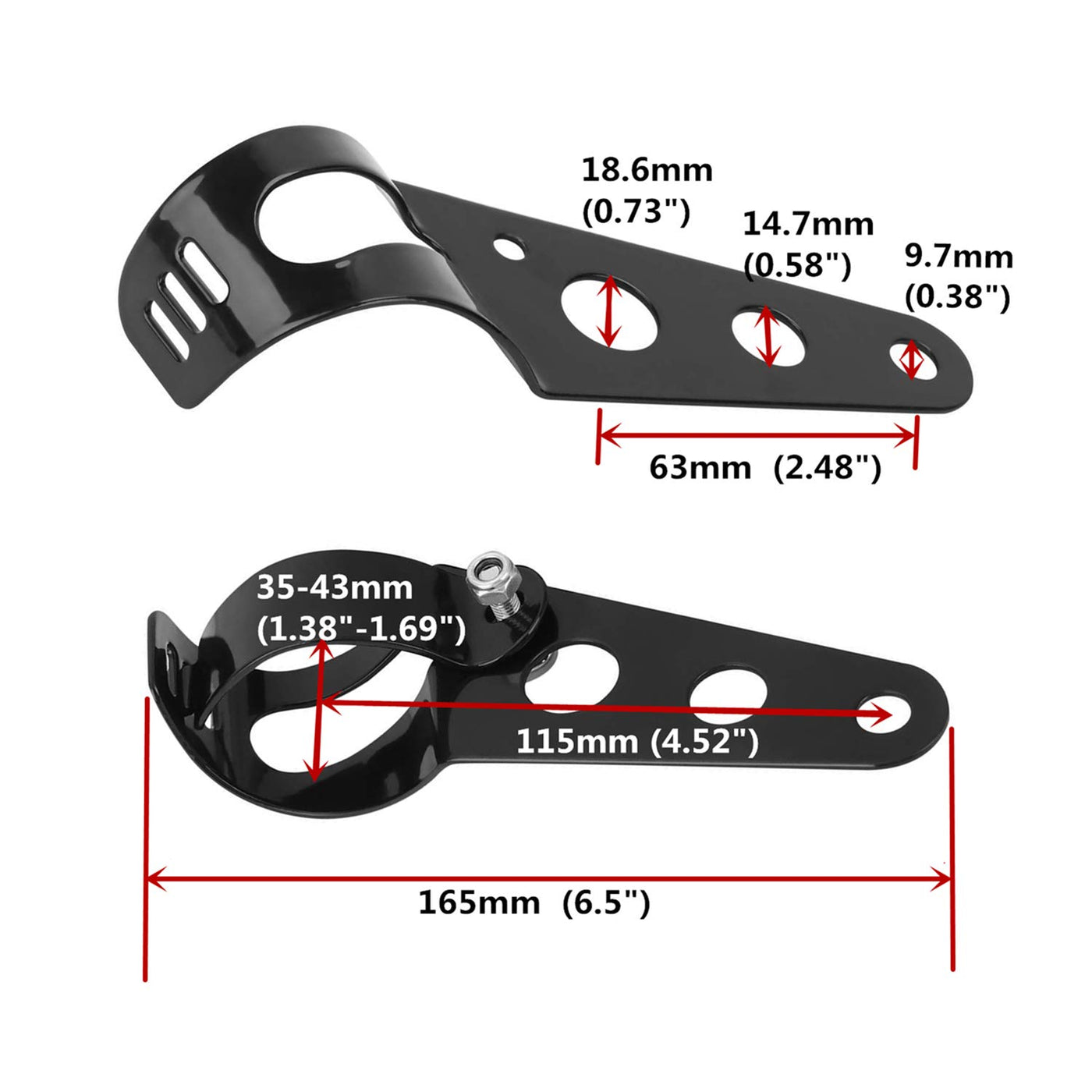 Q: How do I install the headlight mount brackets?A: Installation of the headlight mount brackets is straightforward. They come with required mounting bolts and can be easily adjusted to fit your motorcycle's fork tubes. Simply position the brackets on the fork, secure them with the provided bolts, and ensure they are tightly fastened for safety.