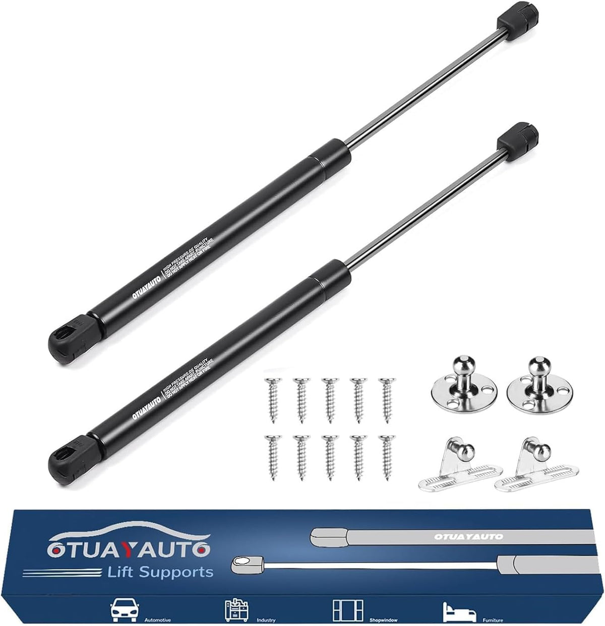 Q: How many gas struts and accessories are included in the package?A: The package includes 2 universal gas struts, 10 screws, and 2 extra gas strut brackets to ensure you have everything needed for installation.