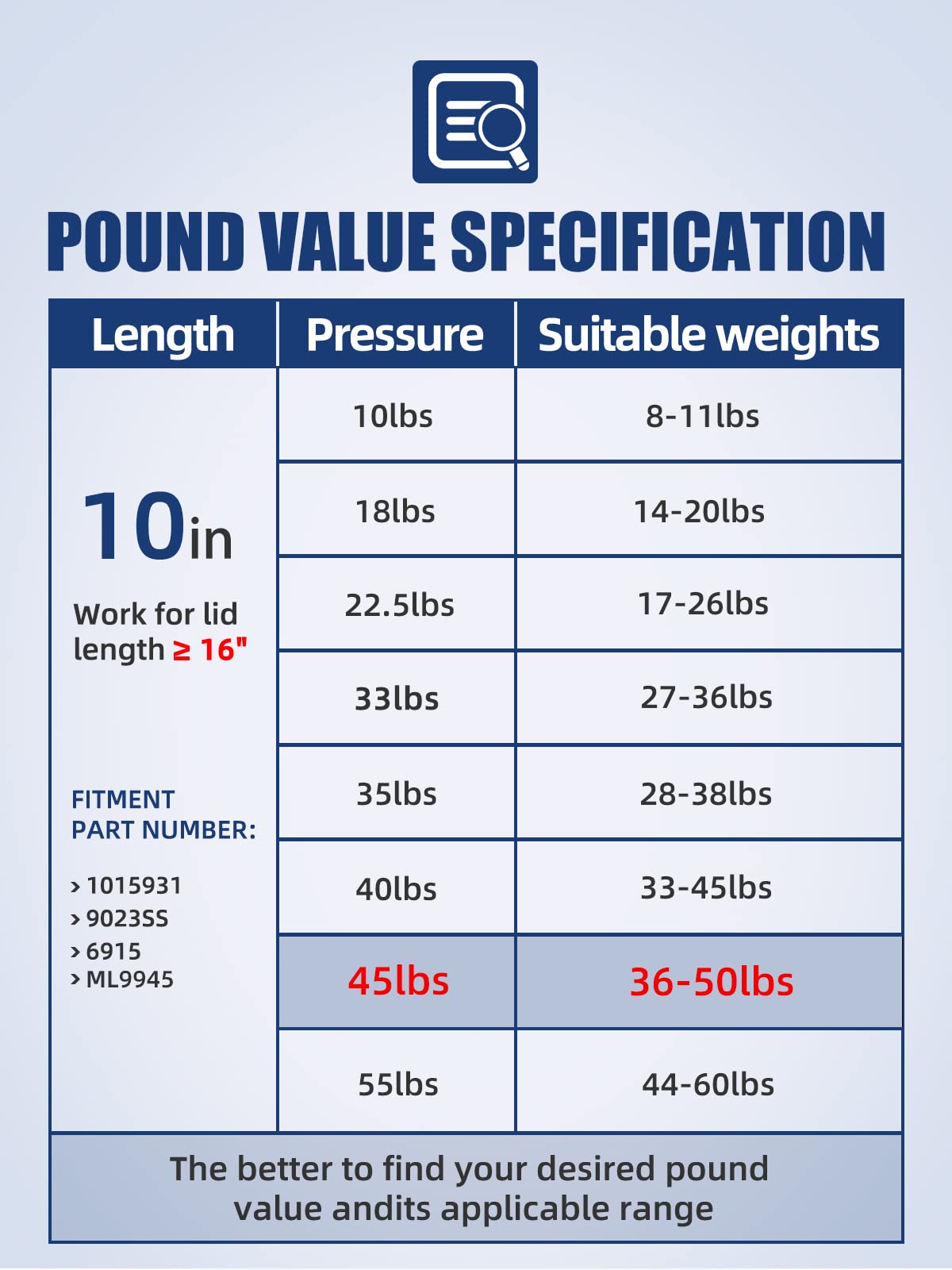 Otuayauto Parts & Accessories When You Want To Get Oem Quality Without The High Dealer Cost, Otuayauto Is The Right Choice For You. Today You Can Fix Your Vehicle Properly And Have Money Left In Your Pocket With A Otuayauto Product. Please Check The Description And Compatibility Chart Before Your Purchasing Specificationse Size: 10 Inch Lift Supports Force: 200N/45Lbs (Per Strut), 400N/90Lbs (Per Set) Extended Length (Center-To-Center): 9-11/16 Inch Compressed Length (Center-To-Center): 6-1/8 Inch Package: 2Pcs Gas Spring Fitment: Household Cabinet, Hatch Lid, Generator House Cover, Trash Bin Lid, Loft Floor Hatch, Outdoor Bench Lid, Trap Door, Garbage Shed Lid, Camper Shell Window, Teardrop Trailer, Dog House/Hen House Cover, And So On. Your Satisfaction Is Our Utmost Concern.