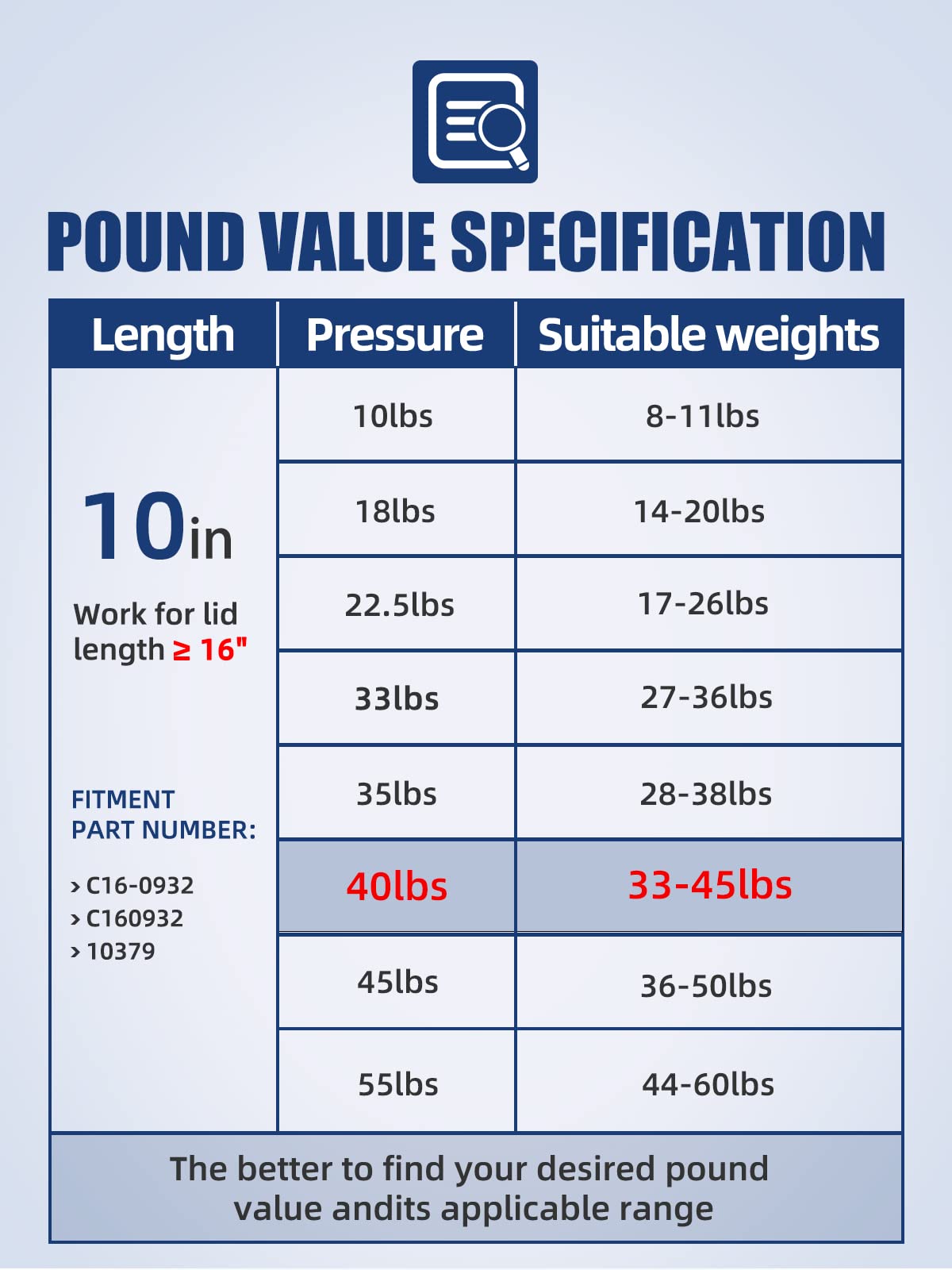 Otuayauto 17 Inch Gas Strut - 178N/40Lbs Universal Lift Support - C1606874 Gas Shocks For Tool Box Shock, Truck Cap Strut, Hydra