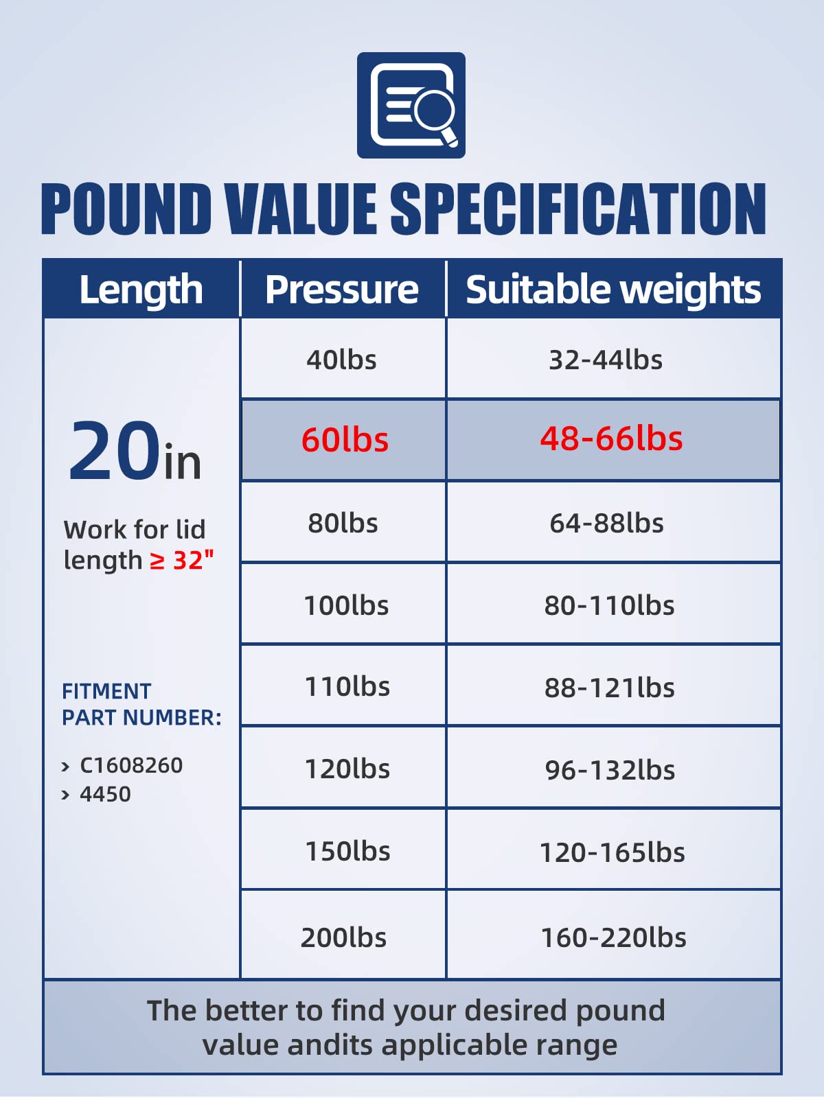 Otuayauto 20 Inch Gas Strut - 60Lbs Universal Lift Support - C1608260 Gas Shocks For Tool Box, Truck Cap, Cabinet, Rv Door