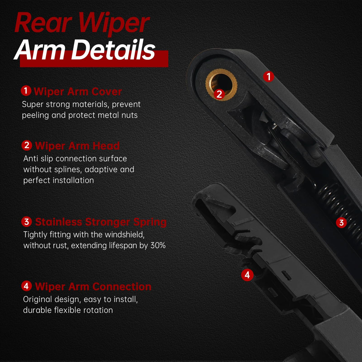 Q: How easy is it to install the OTUAYAUTO rear wiper arm and blade?A: Installation is straightforward. Simply joint the wiper arm with the cross-pillar in the middle of the wiper blade, position it vertically, and install the kit in the window. Ensure all plastic or metal is removed from the wiper motor shaft before installation.