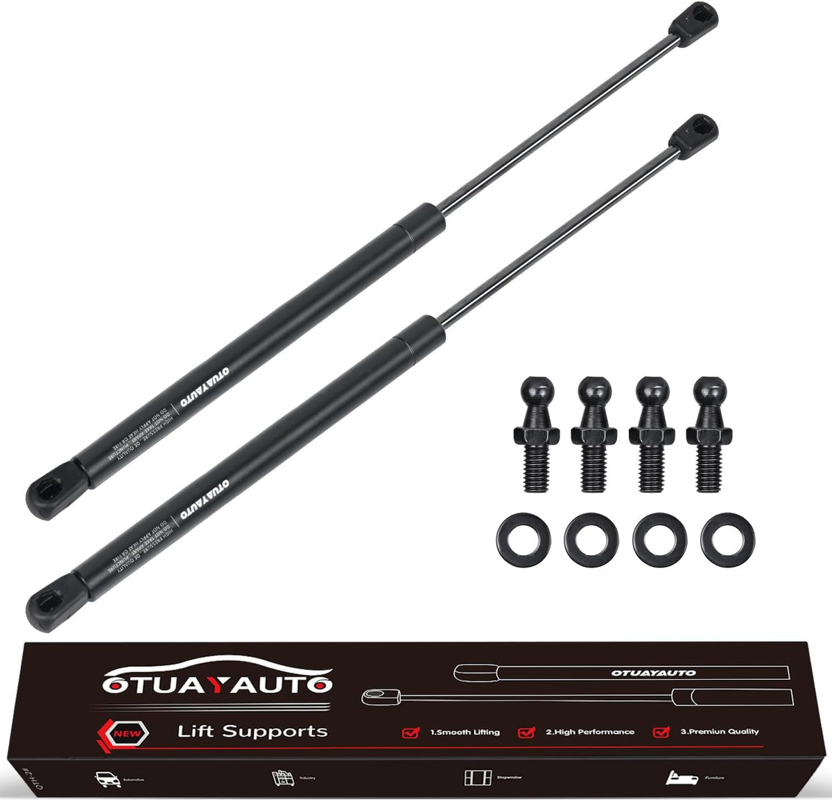 Q: What materials are used in the construction of the hood lift supports?A: The OTUAYAUTO Front Hood Struts are made to meet OEM specifications, featuring durable materials that ensure long-lasting performance and reliability, suitable for daily use.