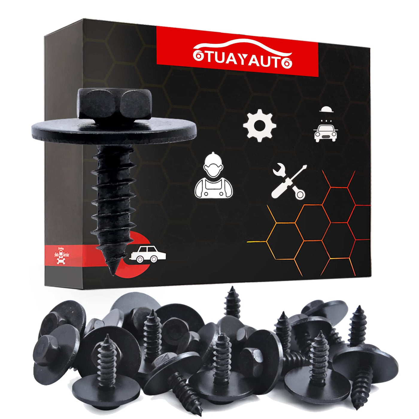 Q: How many screws are included in each package?A: Each package includes 20 pieces of the OTUAYAUTO Hex Head Screws, providing a sufficient stock for your automotive needs. This quantity is ideal for replacing lost screws during maintenance or repairs.