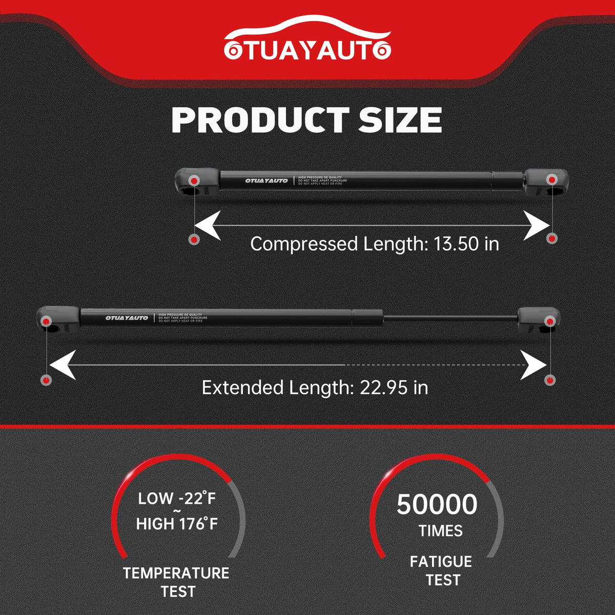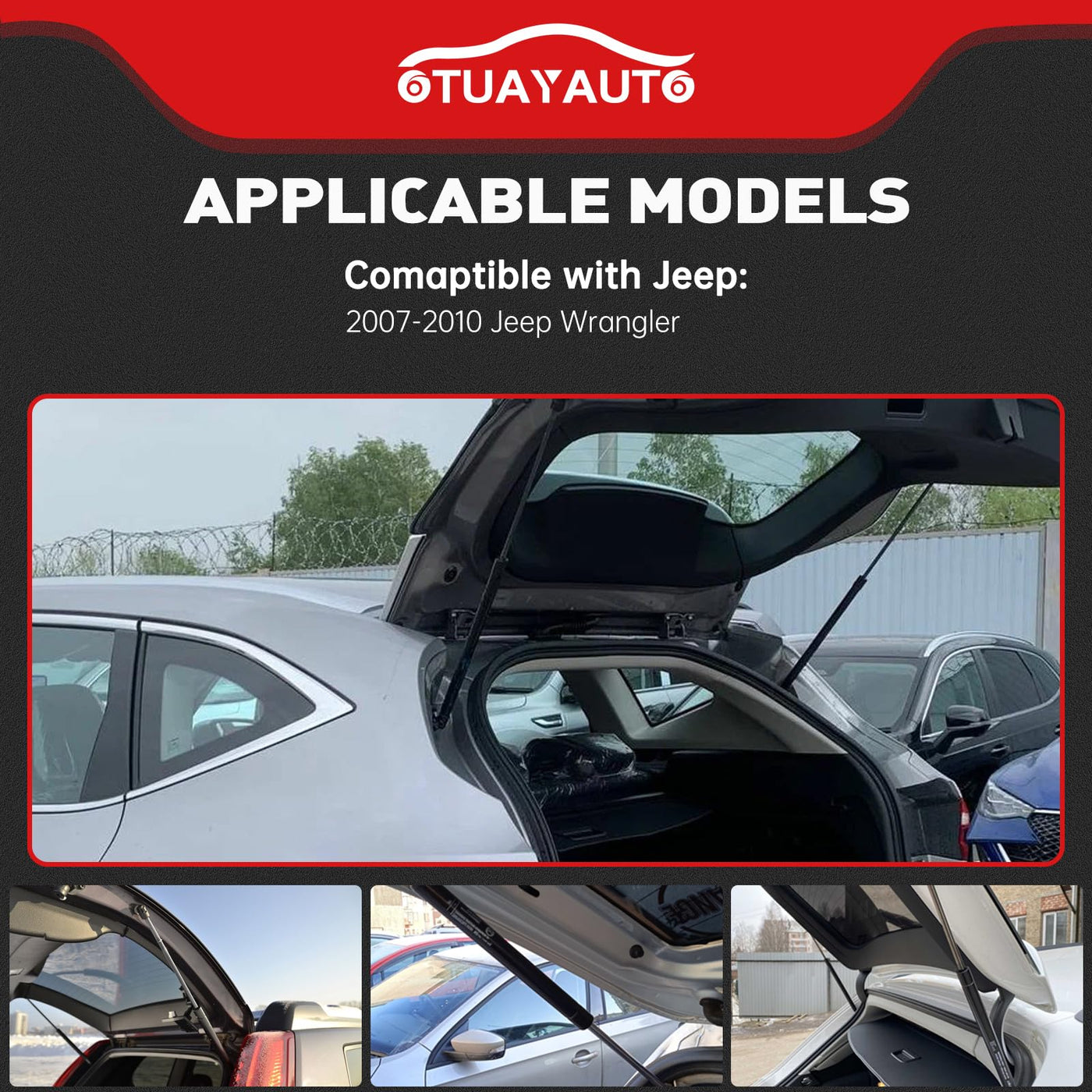 Fitmemt: This rear glass window lift supports shocks Replacement for 2007 2008 2009 2010 Jeep Wrangler | Interchange Part Number: Rear window galss: 6602, SG214054, 55397060AC, 4589609AA, 8196273 | Size: Rear glass shocks extended length: 22.95inches (center to center), compressed length: 13.50inches (center to center) | Easy Installation: The rear window lift supports can be installed within minutes and no special tools required, able to work in any conditions | Service: If there are any quality problems with the product, OTUAYAUTO is willing to provide you with a solution