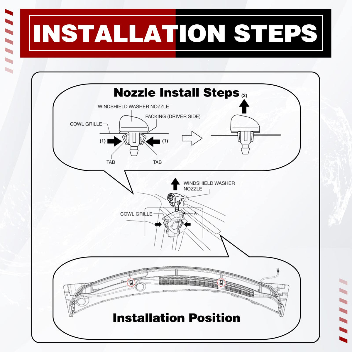 Compatible with Toyota ? 2010-2016 4Runner ? 2009-2016 Avalon ? 2007-2011 Camry ? 2009-2016 Corolla ? 2008-2016 Highlander ? 2008-2016 Land Cruiser ? 2009-2014 Matrix ? 2016-2016 Mirai ? 2010-2015 Prius ? 2012-2016 Prius C ? 2012-2016 Prius V ? 2006-2016 RAV4 ? 2008-2016 Sequoia ? 2015-2016 Tacoma ? 2007-2016 Tundra ? 2009-2016 Venza Compatible with Scion ? 2008-2015 XB ? 2016-2016 IM ? 2012-2015 IQ ? 2011-2016 TC Compatible with Lexus ? 2011-2016 CT200H ? 2013-2016 ES300H ? 2007-2016 ES350 ? 2010-2016 IS250 ? 2010-2016 IS350 How to REMOVAL? 1. Remove the wiper arms from the wiper pivots. 2. Open the hood and pull the hood to plenum seal off of the forward flanges of the cowl grille cover and the plenum panel. 3. Remove the cowl plenum cover / grille panel from the top of the cowl plenum. 4. Disconnect the washer hoses from the three barbed nipples of the wye fitting / check valve unit. 5. Remove the wye fitting / check valve unit from the underside of the cowl plenum cover / grille panel. How to Installation: 1. Position the wye fitting / check valve unit to the underside of the cowl plenum cover / grille panel. 2. Reconnect the three washer hoses to the barbed nipples of the wye fitting / check valve unit. 3. Reinstall the washer hoses for the washer nozzles into their locating clips on the underside of the cowl plenum cover / grille panel. 4. Reinstall the cowl plenum cover / grille panel onto the top of the cowl plenum panel. 5. Reinstall the wiper arms onto the wiper pivots. Your satisfaction is our utmost concern. Please contact us to resolve any issue