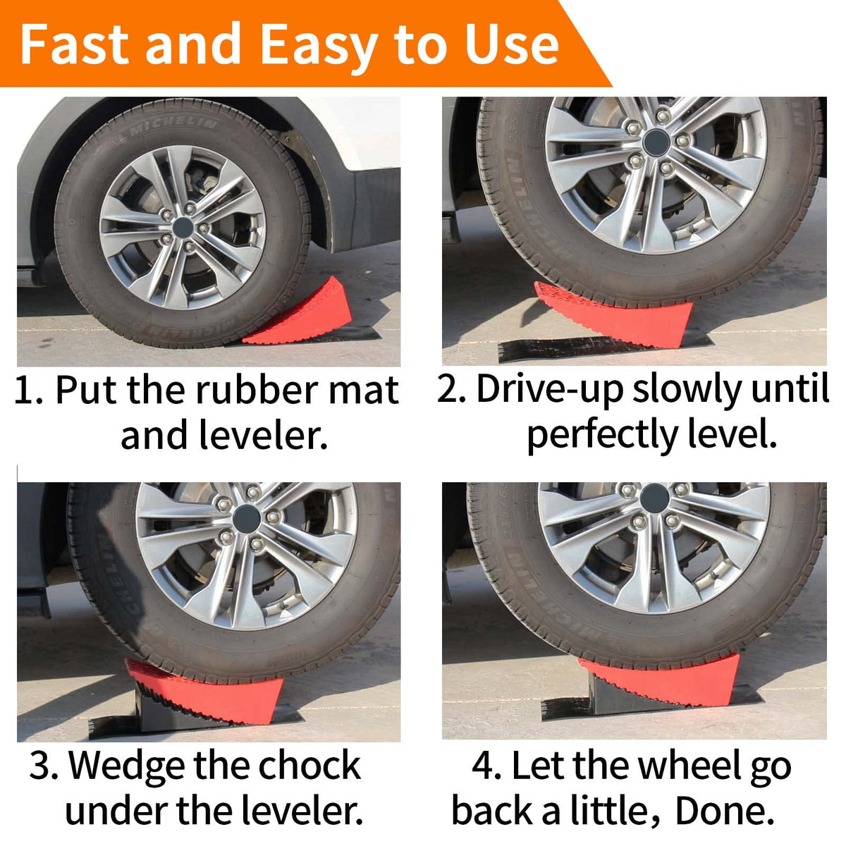 Ouleme Rv Leveling Blocks, Camper Leveler System 2 Packs For Dual Axle Tandem Wheel Travel Trailer, Include 2 Curved Leveler Ram