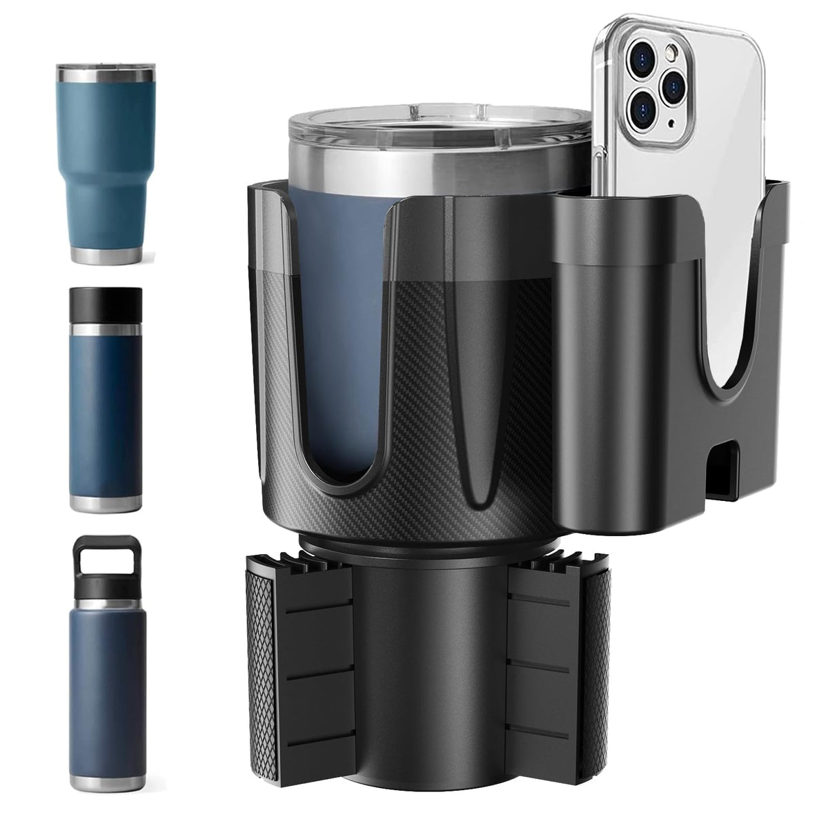 OUSHASAA 2-in-1-Car-Cup-Holder-Expander-Adapter with Phone Holder Adjustable Base Fits Most Cup Holder and Phones, Compatible with HydroFlask, Yeti, Nalgene, Large 32/40 oz Bottles in 3.2''-3.8'' (1pcs)