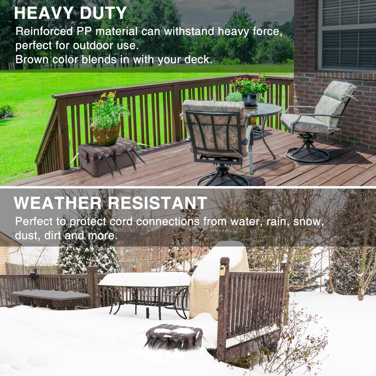 Flemoon Waterproof Electrical Box, IP54 Extension Cord Cover, Large Weatherproof Connection Box, Brown