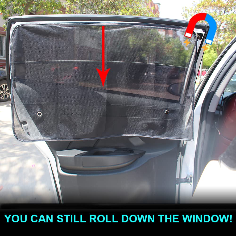 Ovege Car Window Shade 2pcs -Car Side Window Sun Shade Baby UV Protection Privacy Suction Magnetic (Back Seat 2pcs), Semi-Transp