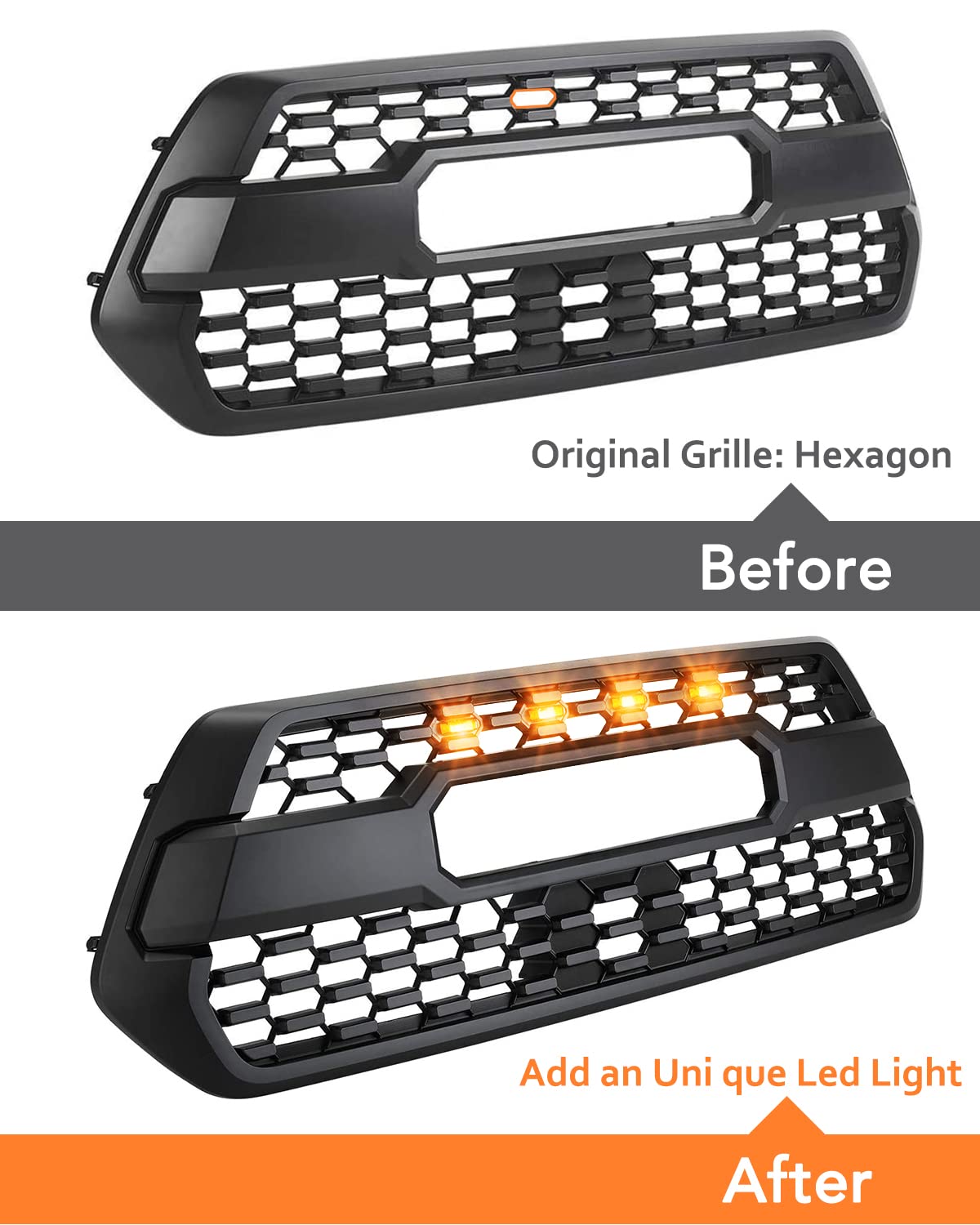 Bright Amber Lights: These amber grille lights are exclusively designed and perfectly fit for Tacoma 2016, 2017, 2018, 2019, 2020, 2021, 2022, 2023 TRD PRO grille. High brightness amber lights will give your truck a stylish overall look and make your truck stand out