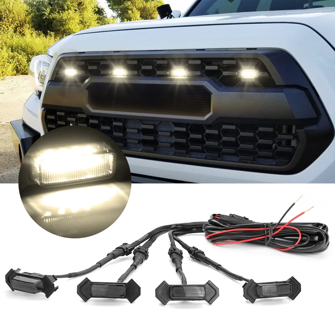 Oxilam Led Grille Lights 4 Pcs With Harness & Fuse Adaptor For Toyota Tacoma Trd Pro 2016-2023 Oem Front Grille, Black Shell With Warm White Light, (Warm White)