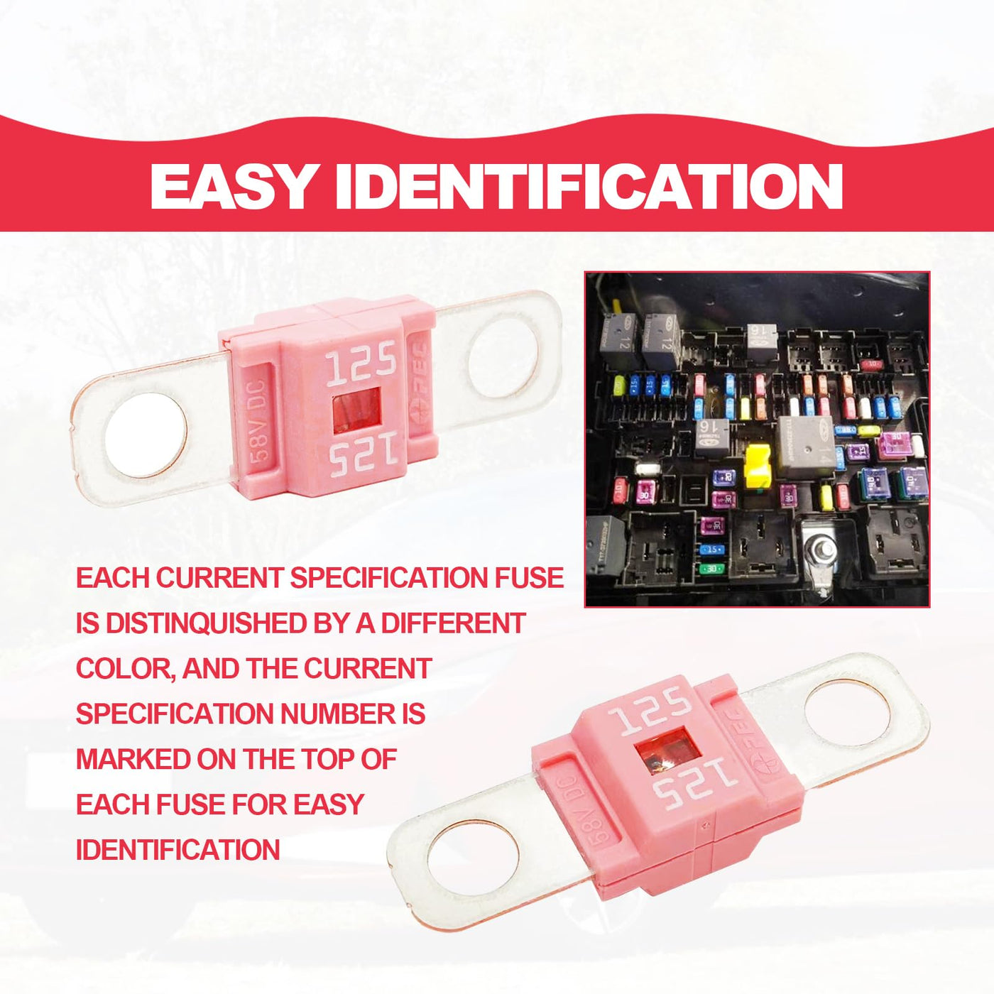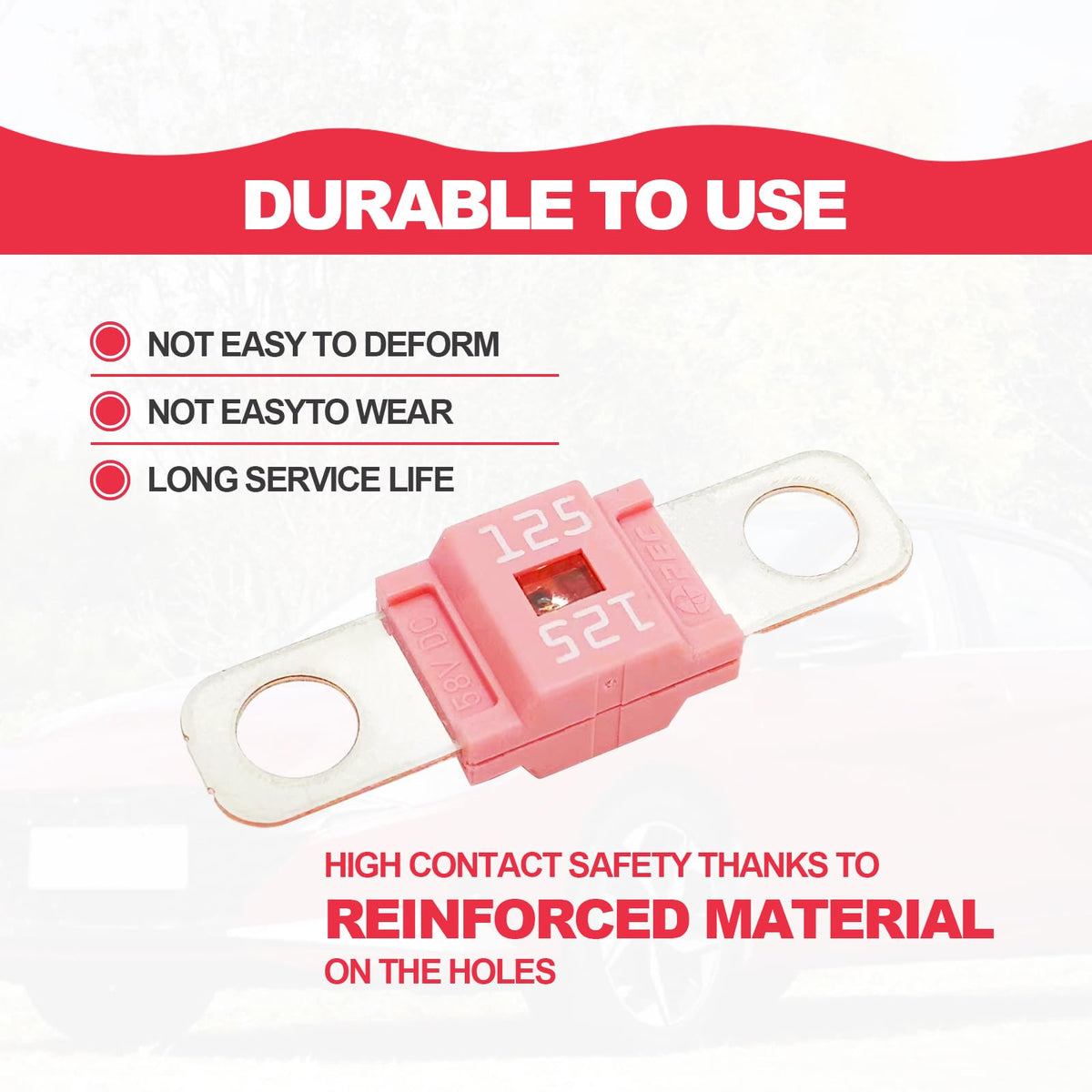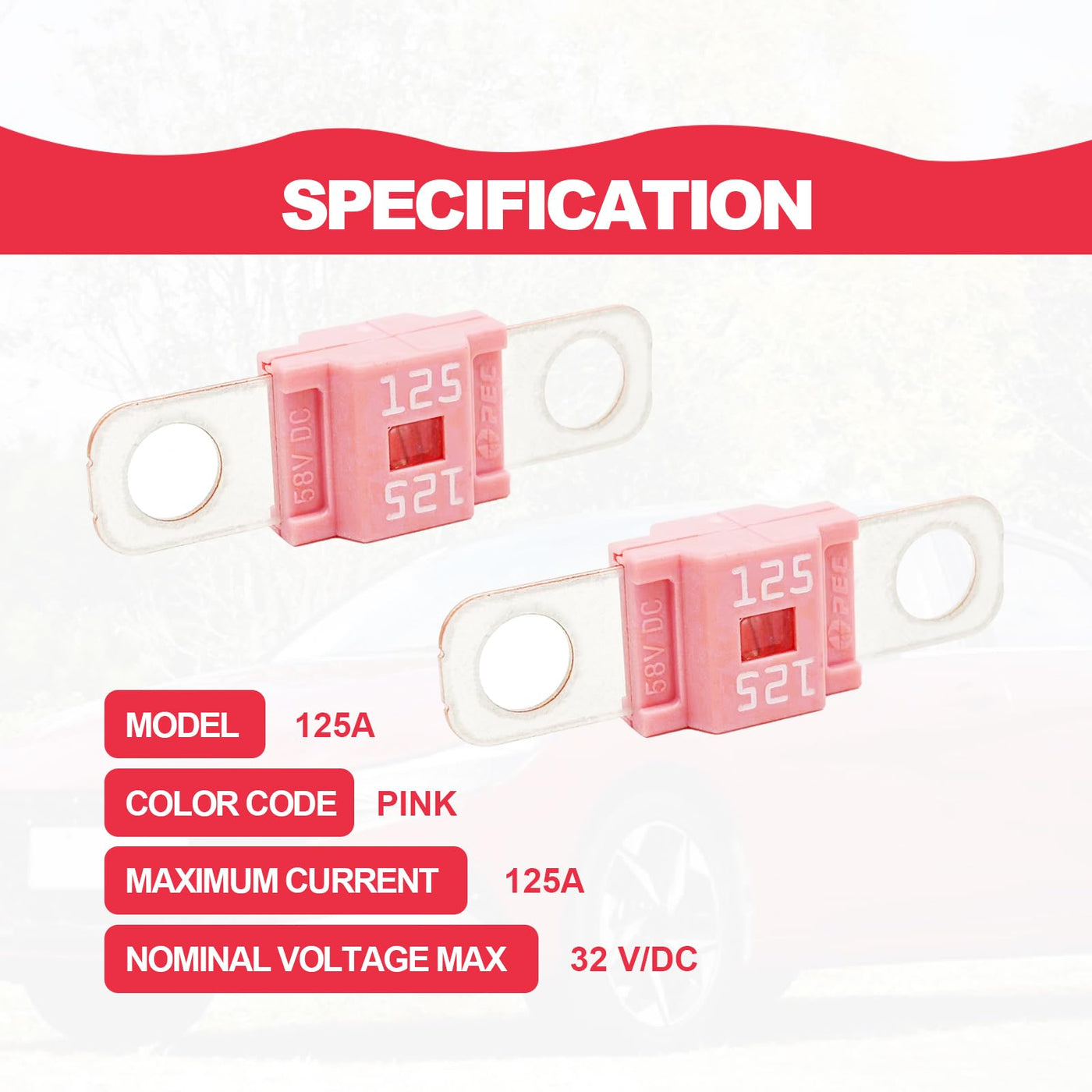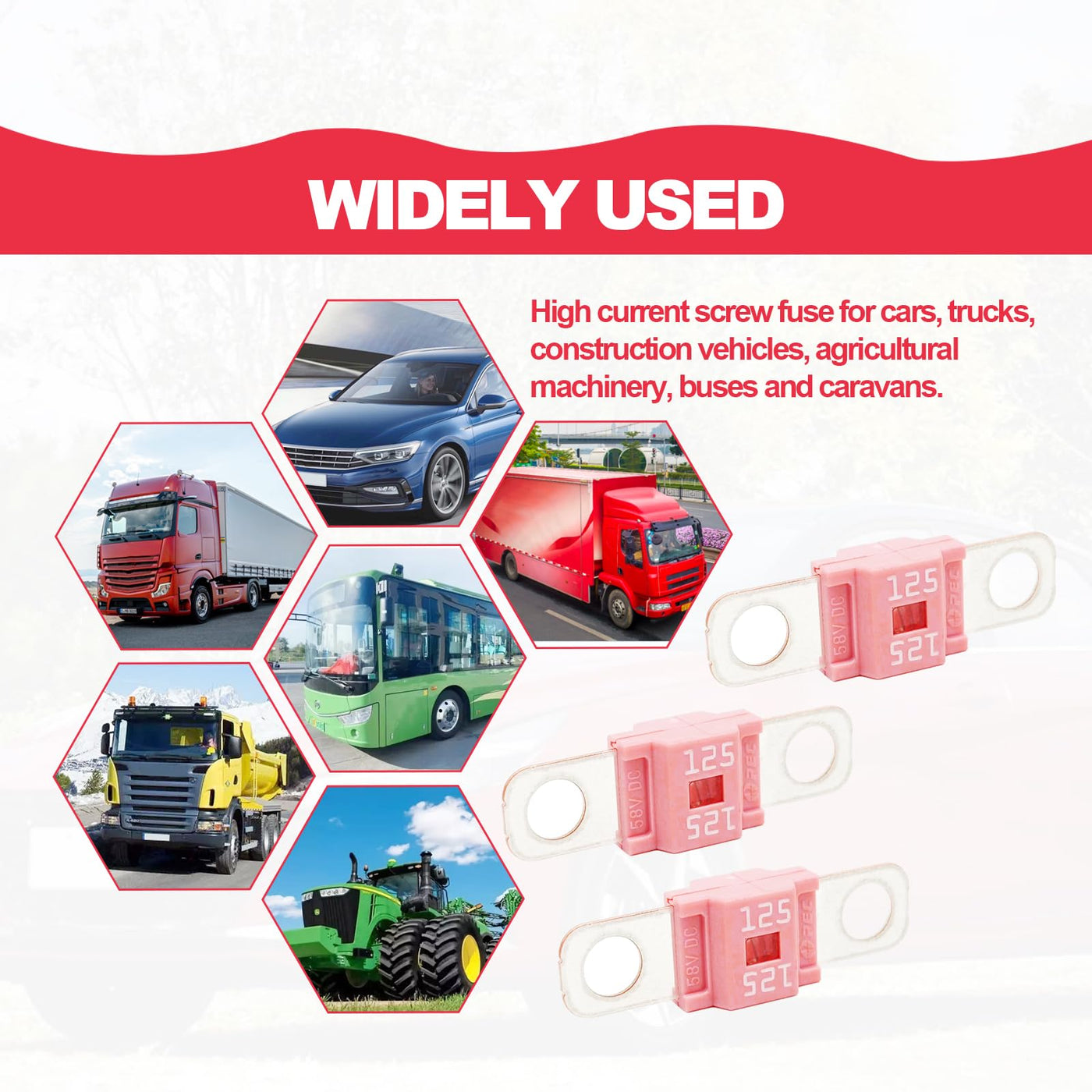 Pack of 3 AMI/Midi Fuse 125 Amp High Current Fuse Bolt-on Fuse, commonly Used in Cars, Trucks, Construction Vehicles, Agricultur