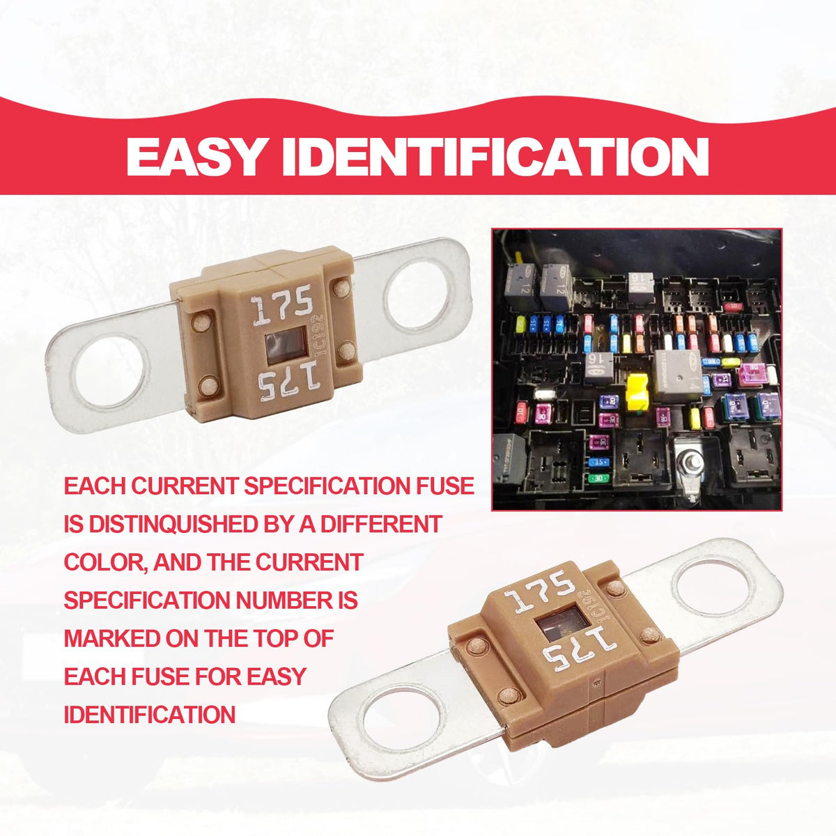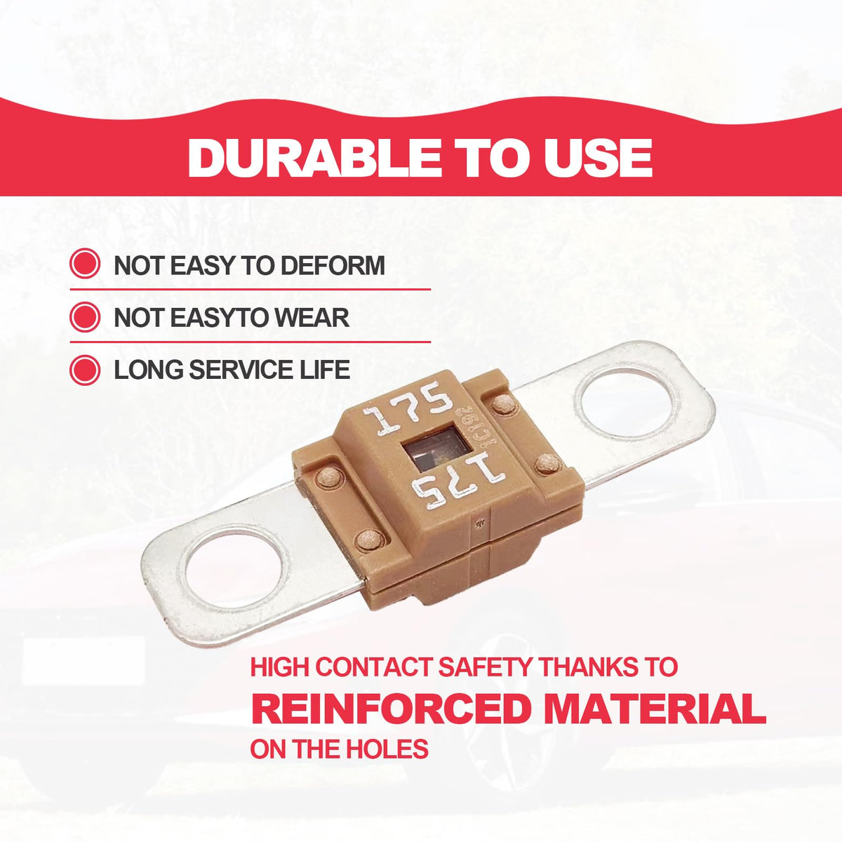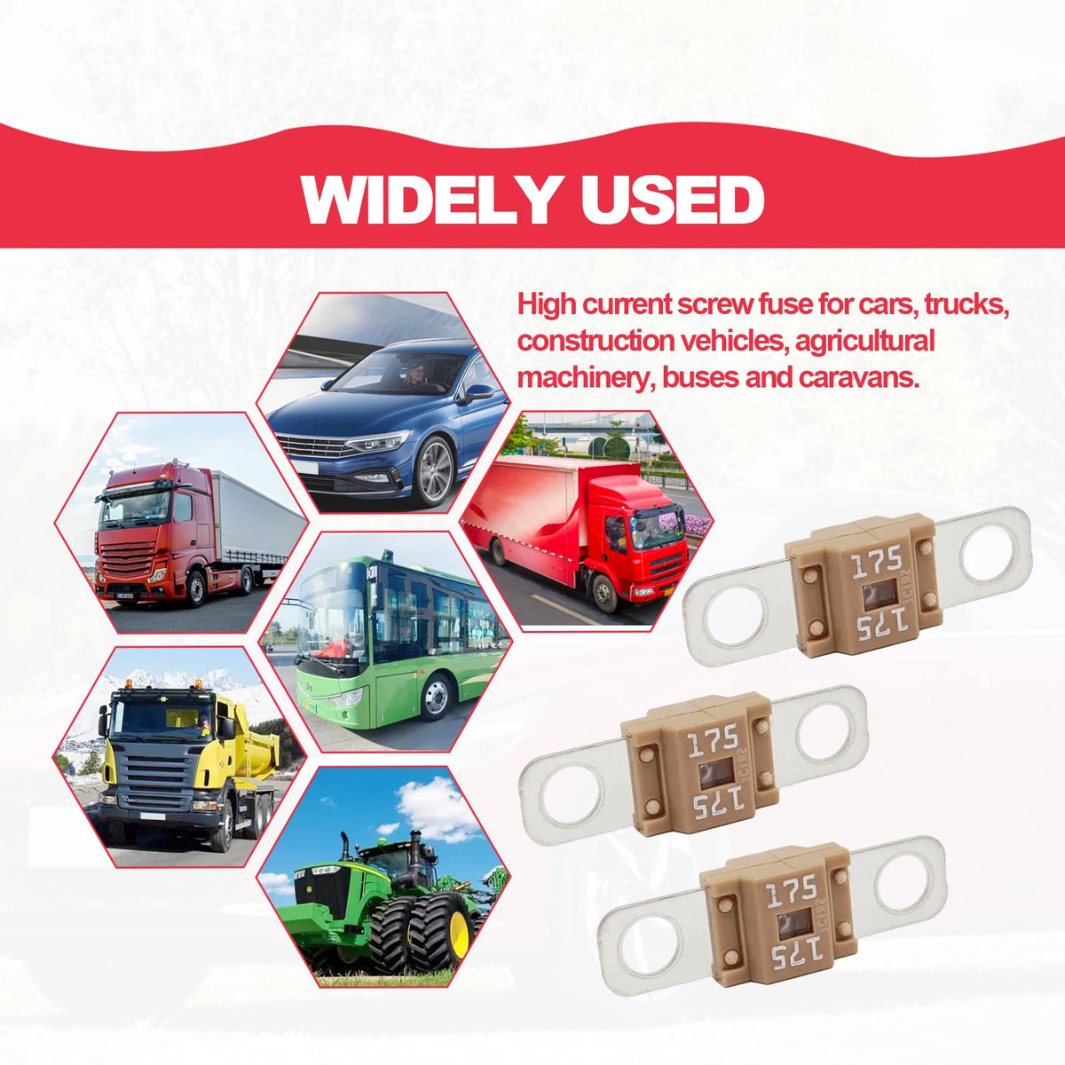 Pack of 3 AMI/Midi Fuse 175 Amp High Current Fuse Bolt-on Fuse, commonly Used in Cars, Trucks, Construction Vehicles, Agricultur