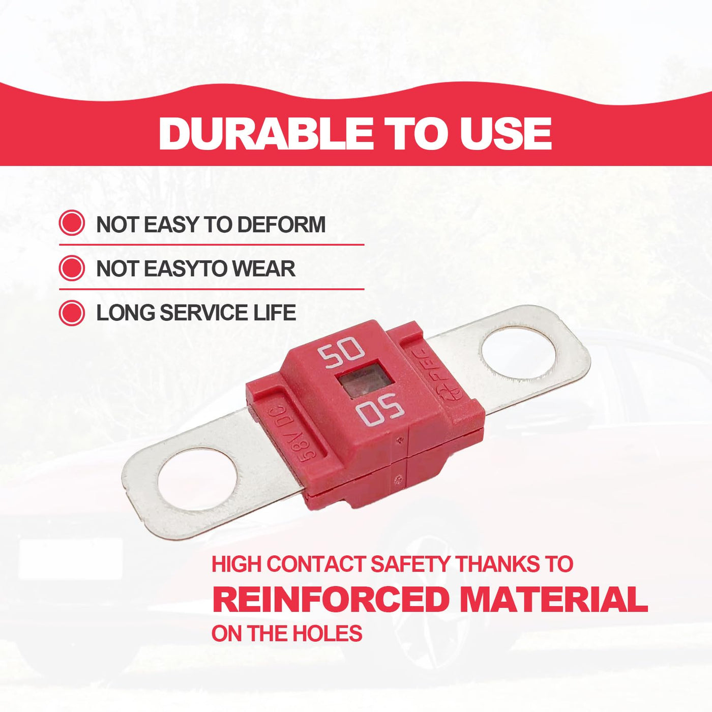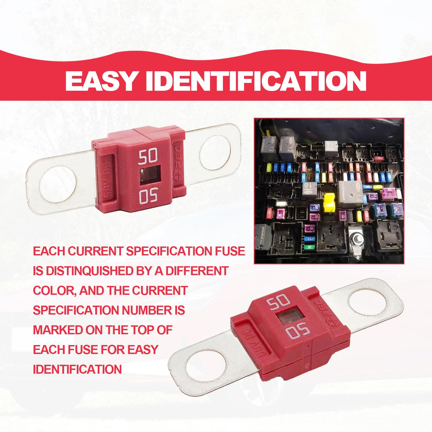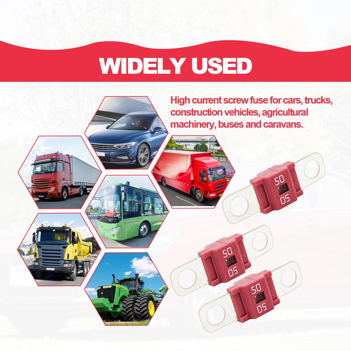 Pack of 3 AMI/Midi Fuse 50 Amp High Current Fuse Bolt-on Fuse, commonly Used in Cars, Trucks, Construction Vehicles, Agricultura