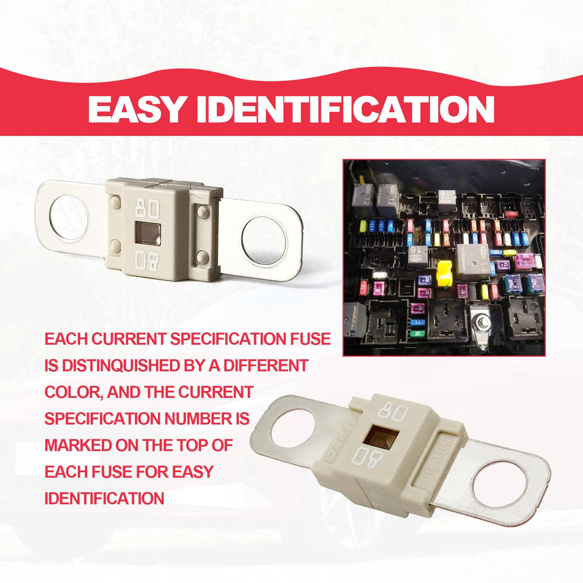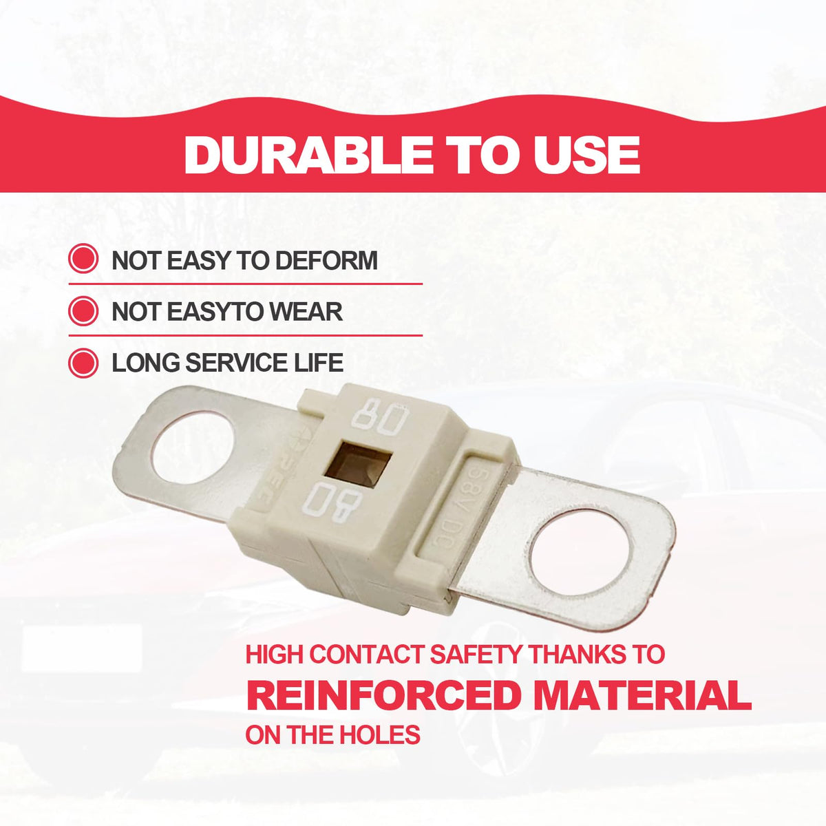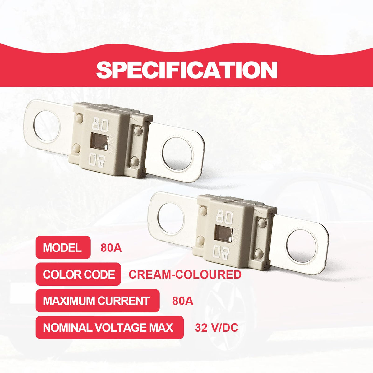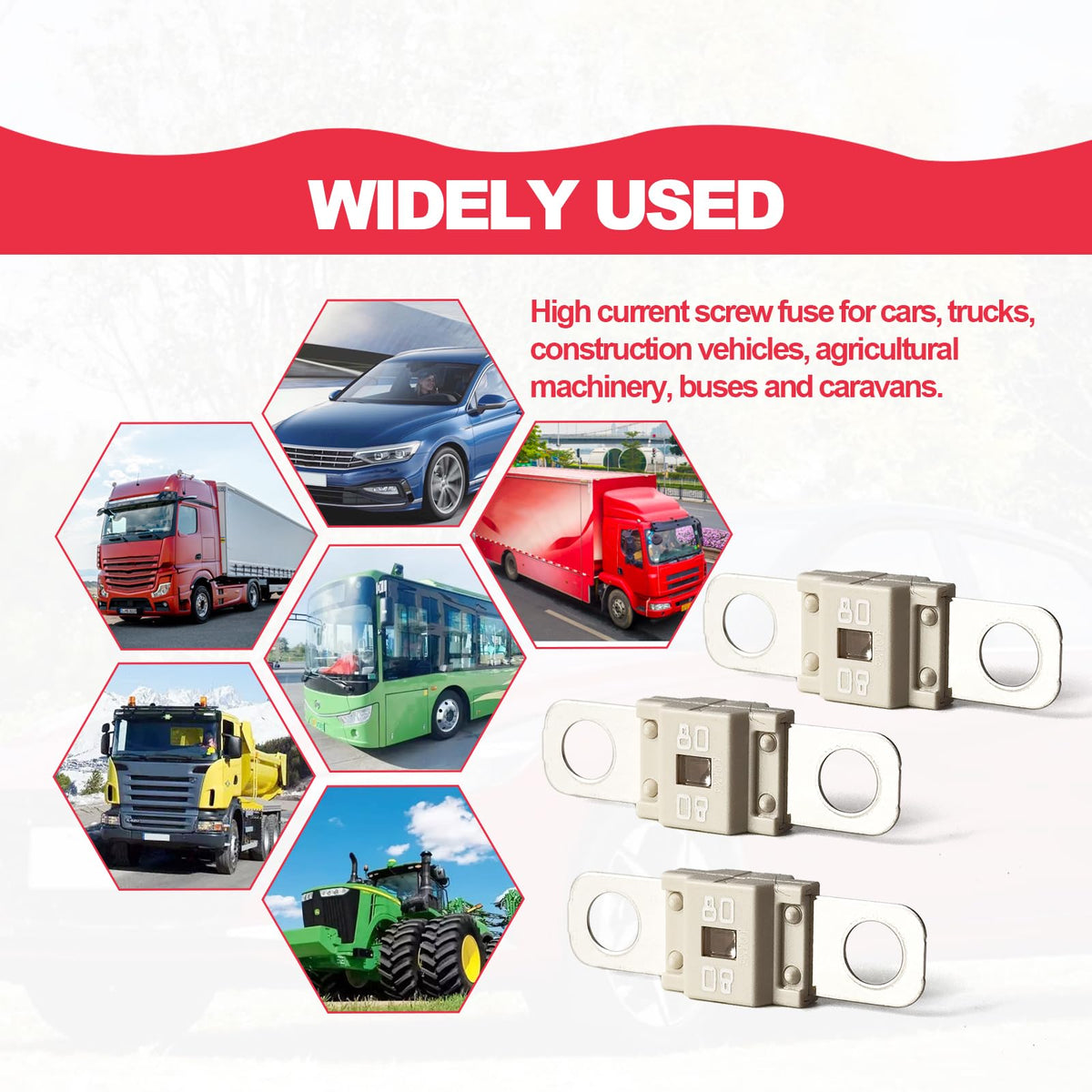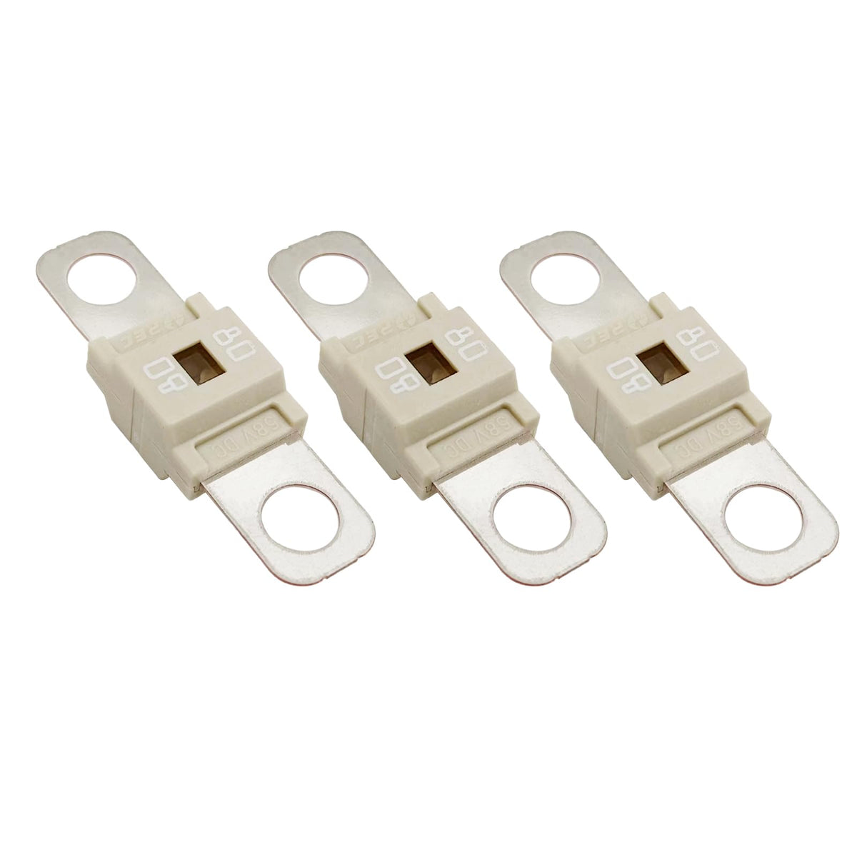 Pack of 3 AMI/Midi Fuse 80 Amp High Current Fuse Bolt-on Fuse, commonly Used in Cars, Trucks, Construction Vehicles, Agricultura