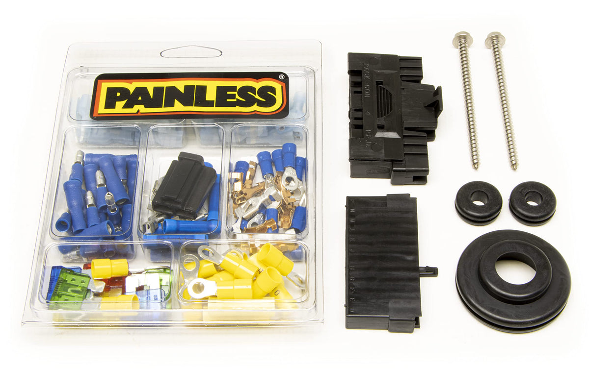This Painless Performance 21-circuit chassis harness is our most widely used customizable automotive wiring harness. This universal kit is great for hot rod or street rod builds, but you'll find that it's easily adaptable to almost any vehicle and has enough length to handle full size and muscle cars. This harness comes with open ended ignition switch wires that can easily be adapted to any ignition switch out there. For those using a GM Keyed Column, Painless part number 10101 comes with a Pre-Terminated GM ignition switch connector. Included with this harness are the following parts: GM engineered fuse block & Painless mounting bracket, GM turn signal connectors, pre wired plugs for the headlights & dimmer switch. Each wire is printed with the circuit identification as well as using GM color codes for easy installation. Wire your classic car once and wire it right with a Painless Customizable wiring harness.