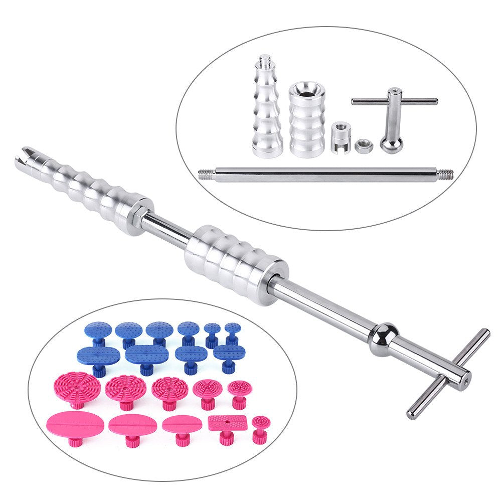Q: How does the Slide Hammer work for dent removal?A: The Slide Hammer utilizes a powerful pulling action to remove dents without damaging the paint. By attaching the appropriate traction tab to the dent and using the hammer, the dent can be pulled out quickly and effectively.