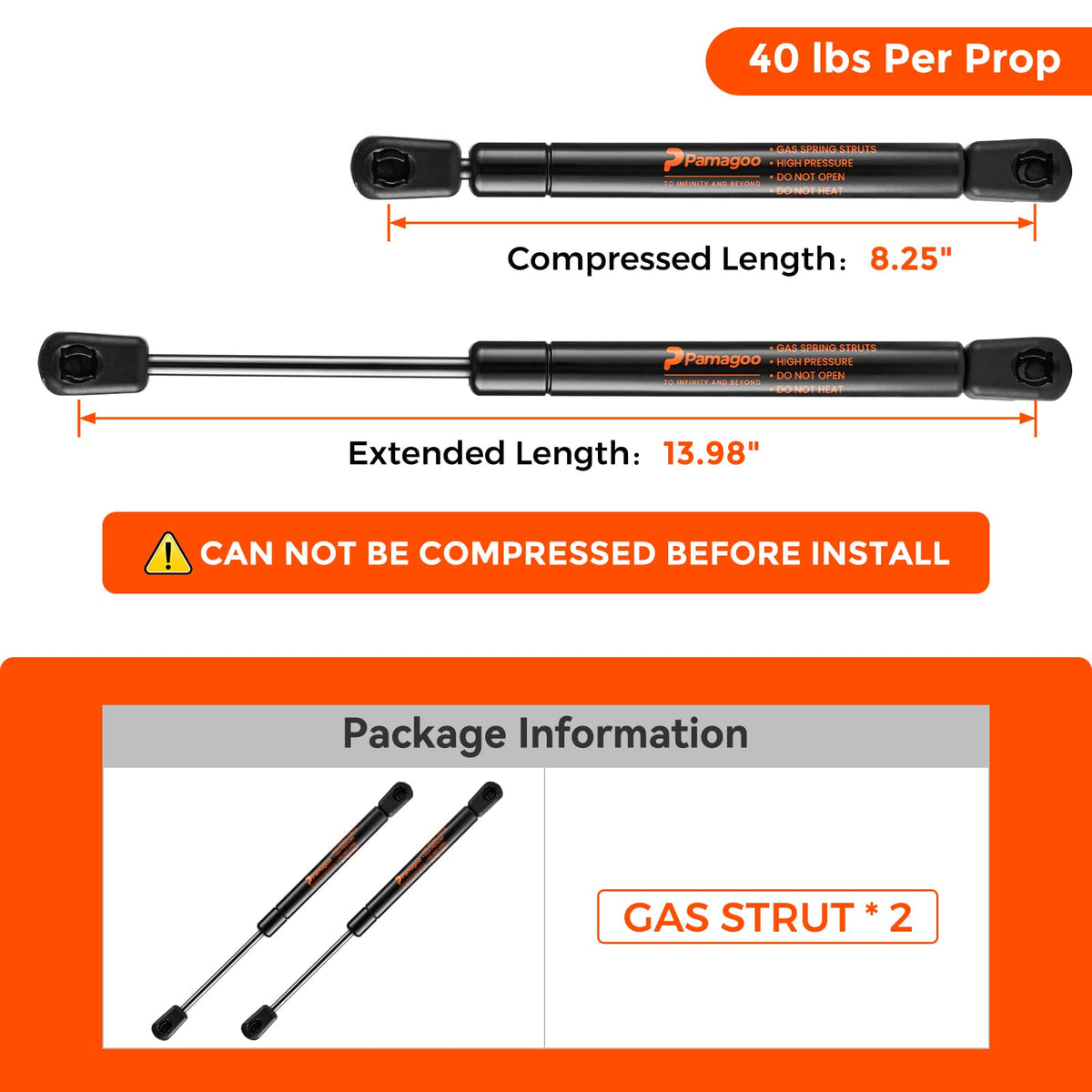 Pamagoo C16-09461 C1609461 14 Inch Gas Shock 40 Lb 178 N Per Prop, Replacement Gas Spring Strut Lift For Camper Truck Rear Windo