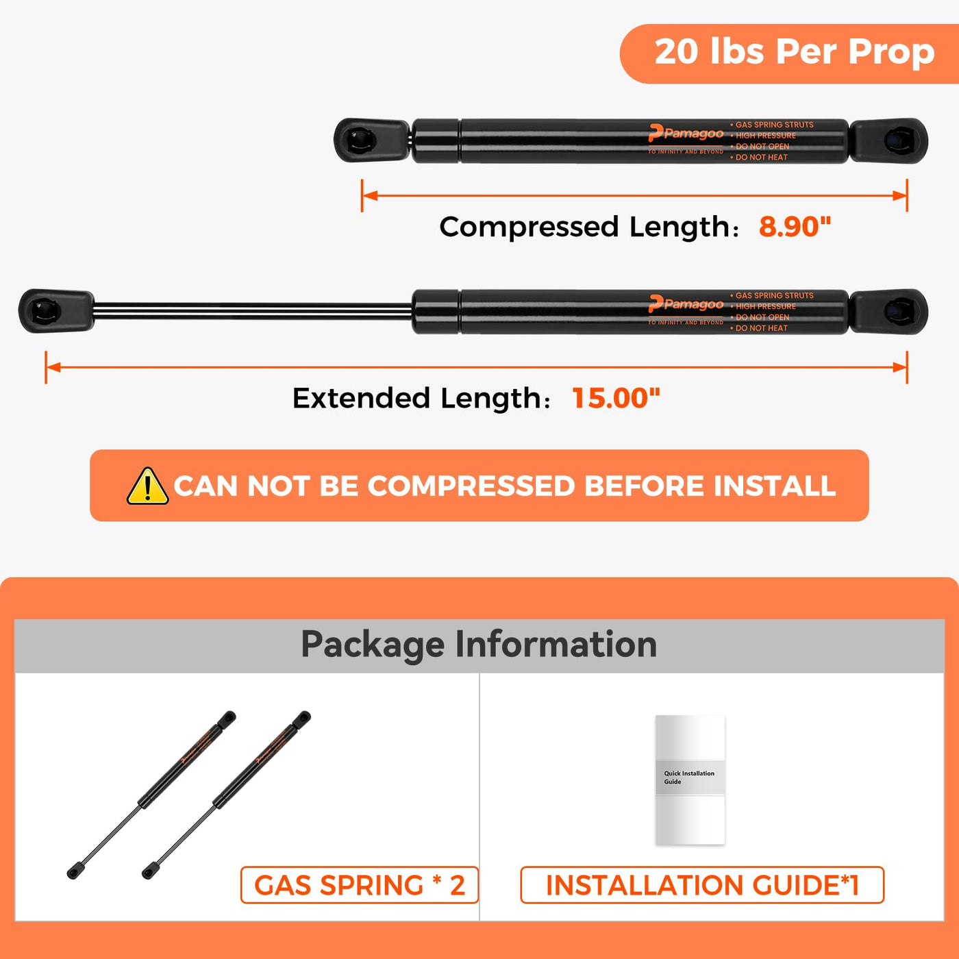 PAMAGOO C16-15066 15 inch Gas Strut 60 lbs 267 N Shock, 15'' Prop Lift Support for Storage Tool Box Lid A.R.E Snugtop Leer Truck Topper Cap Canopy Cover Camper Shell Pickup Rear Window Spring,2 Pack