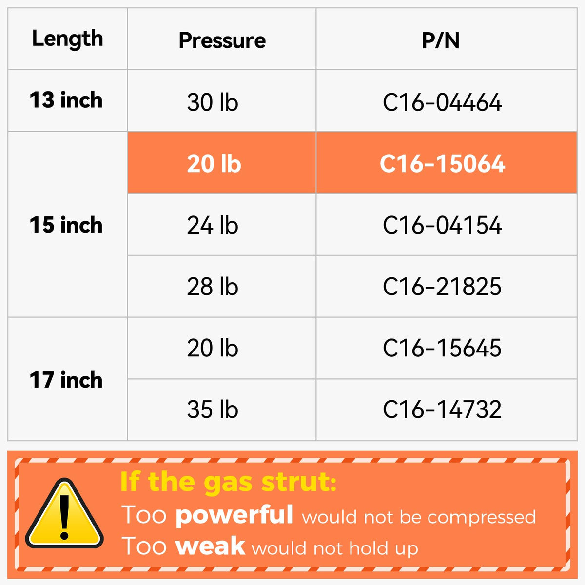 Pamagoo C16-15066 15 Inch Gas Strut 60 Lbs 267 N Shock, 15'' Prop Lift Support For Storage Tool Box Lid A.R.E Snugtop Leer Truck
